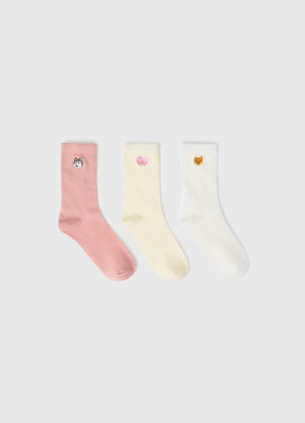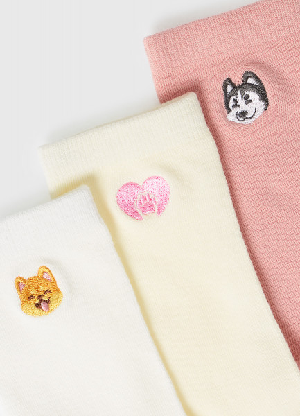 Высокие носки с вышивкой для девочек, 3 пары, Мультицвет