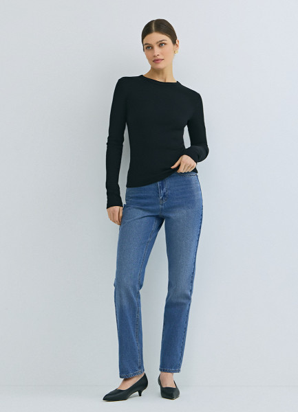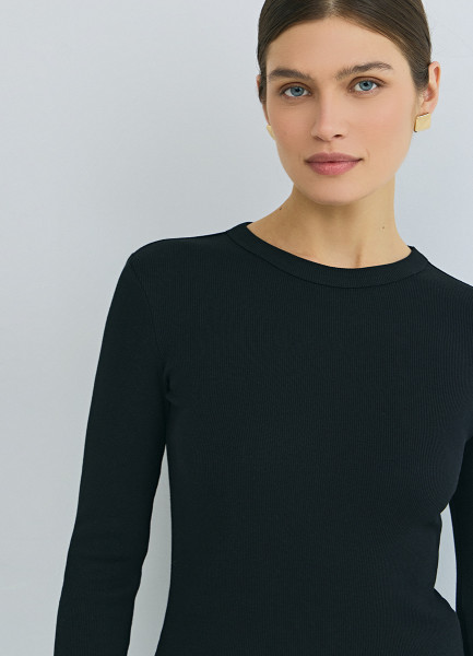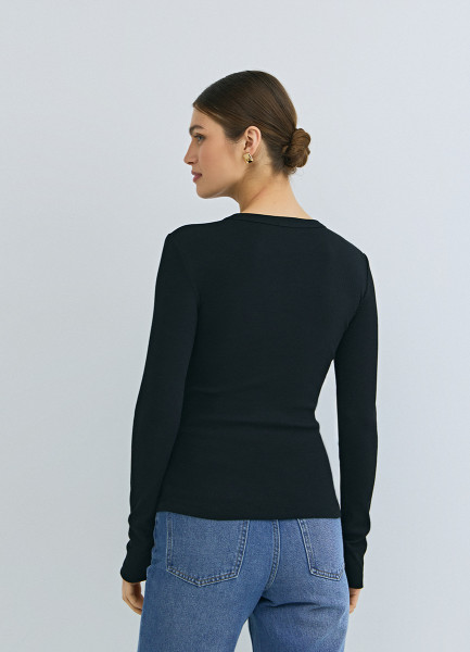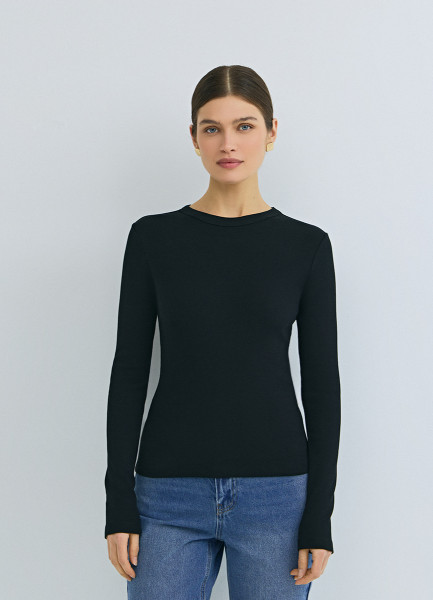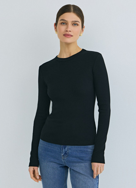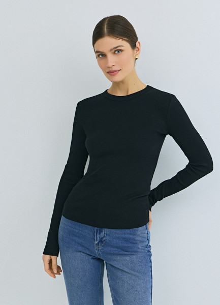 Лонгслив в рубчик, Черный
