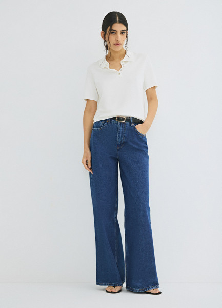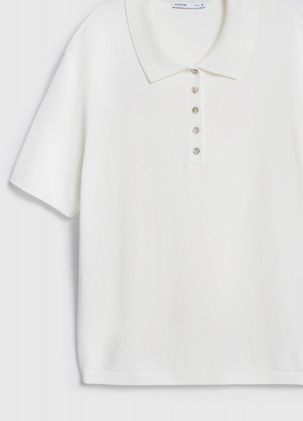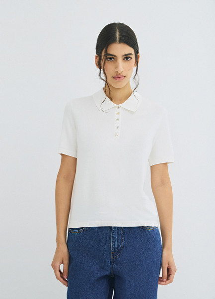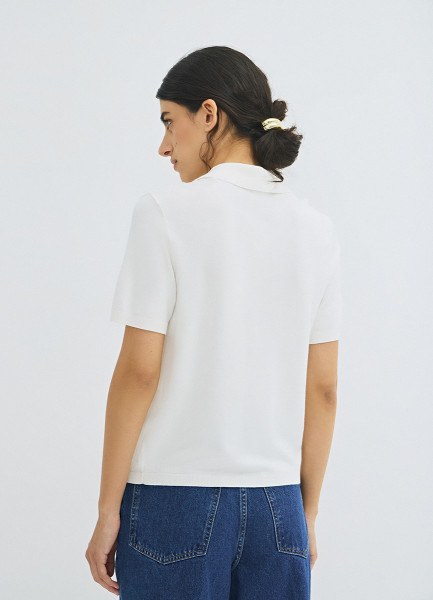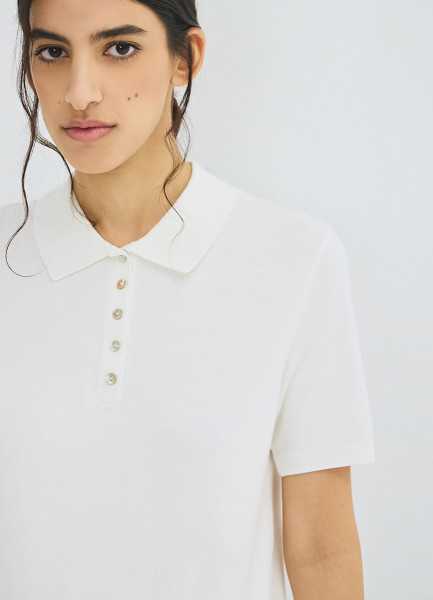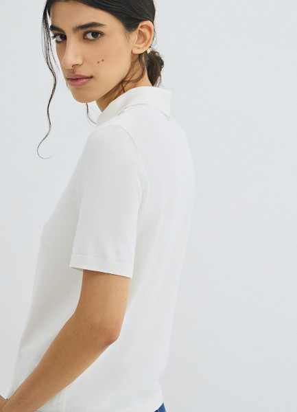 Джемпер с воротником-поло, Белый