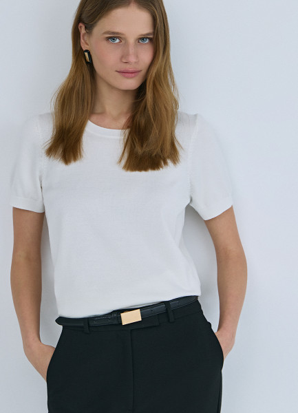 Джемпер из пушистой пряжи с коротким рукавом, Белый