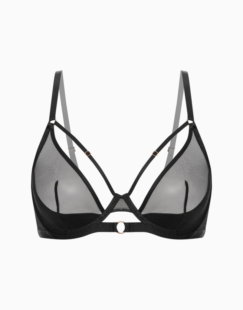 Бюстгальтер с мягкими чашками и усилителем из спонжа на стане. Верхняя часть чашек выполнена из тонких прозрачных материалов, что добавляет особую пикантность образу.