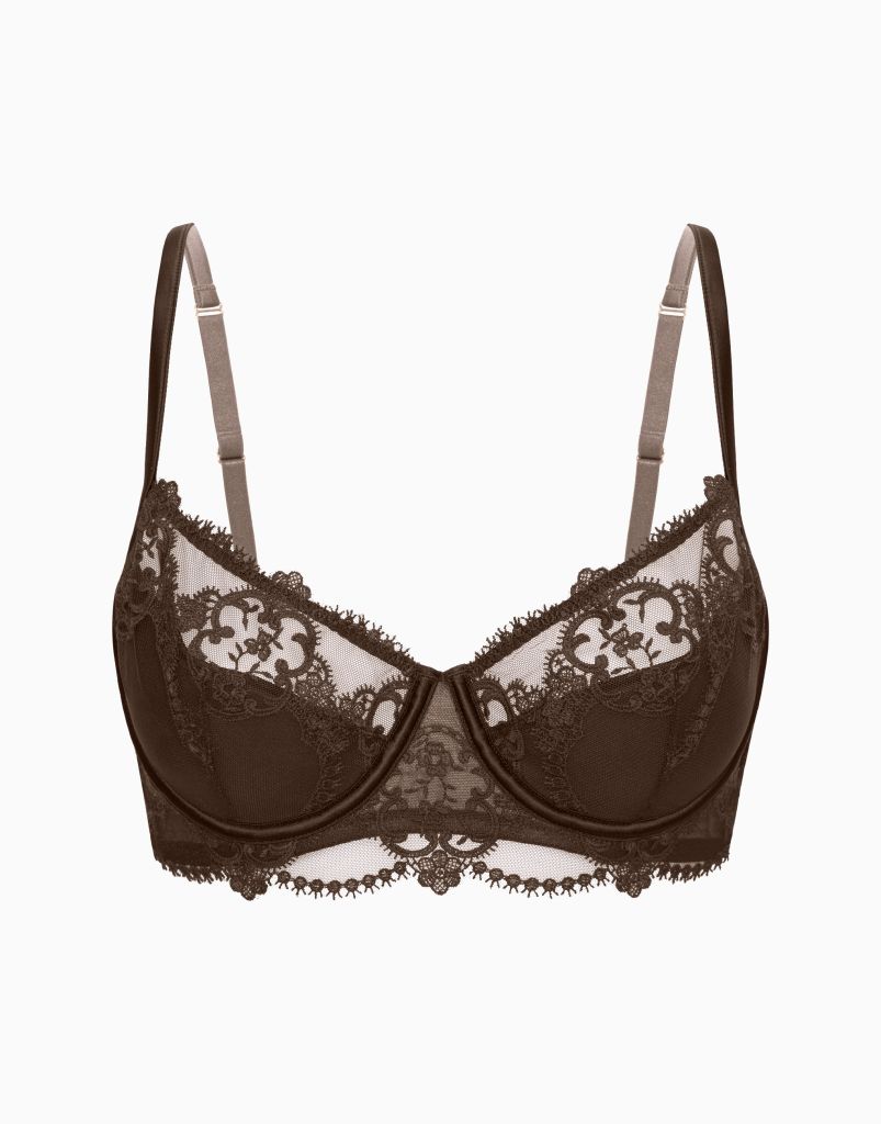 Бюстгальтер с мягкими чашками и усилителем из спонжа на стане. Верхняя часть чашек выполнена из тонких прозрачных материалов, что добавляет особую пикантность образу.