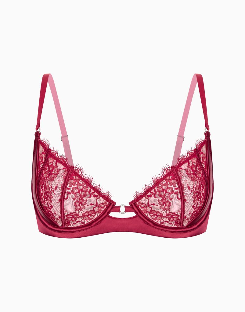 Бюстгальтер с мягкими чашками и усилителем из спонжа на стане. Верхняя часть чашек выполнена из тонких прозрачных материалов, что добавляет особую пикантность образу.