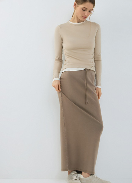 Трикотажная прямая юбка миди, Бежевый