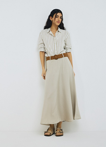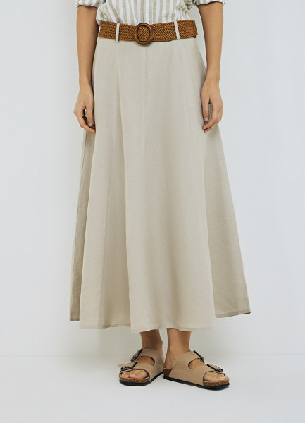 Юбка миди изо льна, Бежевый
