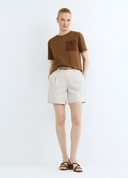 Короткие шорты из хлопка, Бежевый