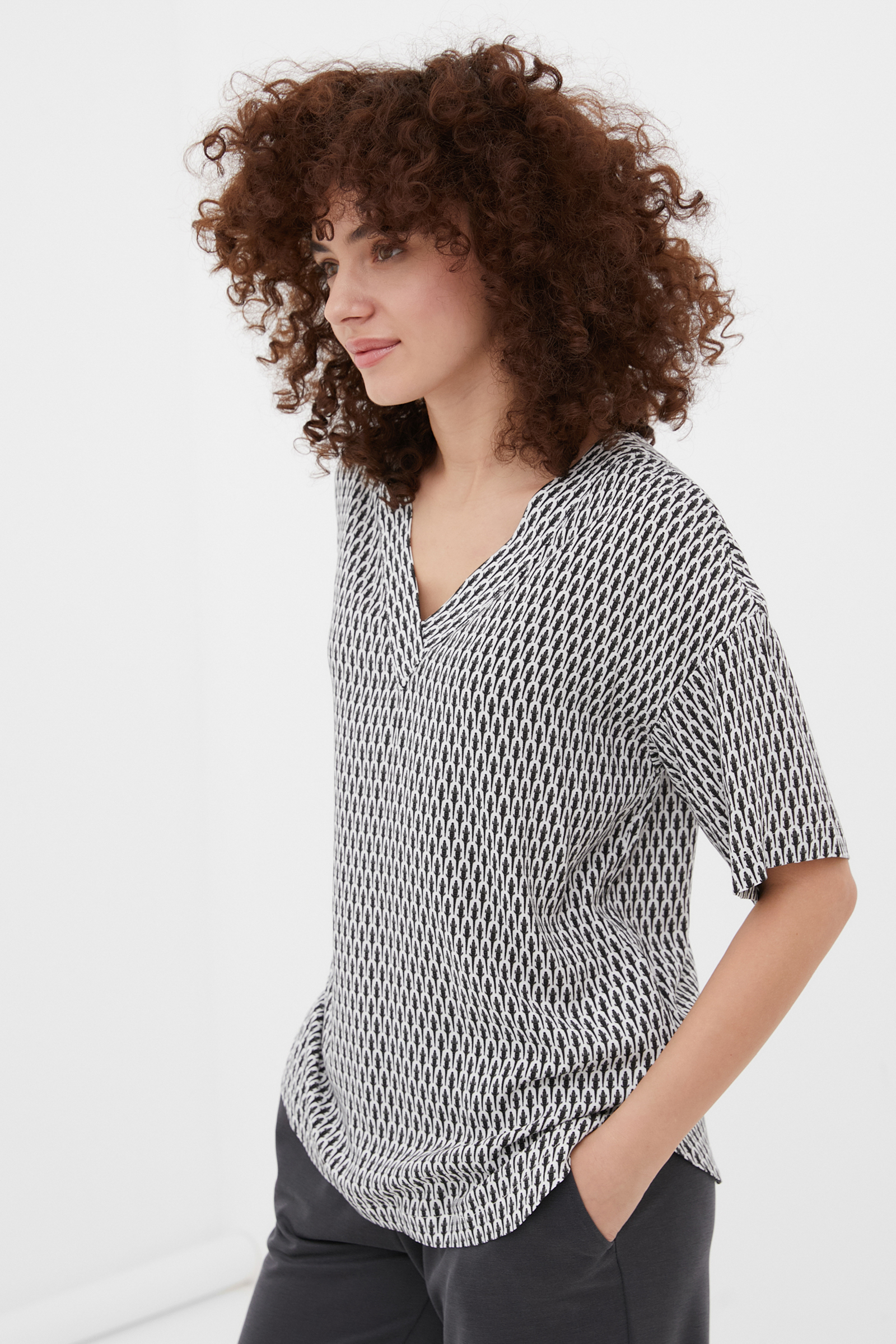 Блузка свободного силуэта с коротким рукавом