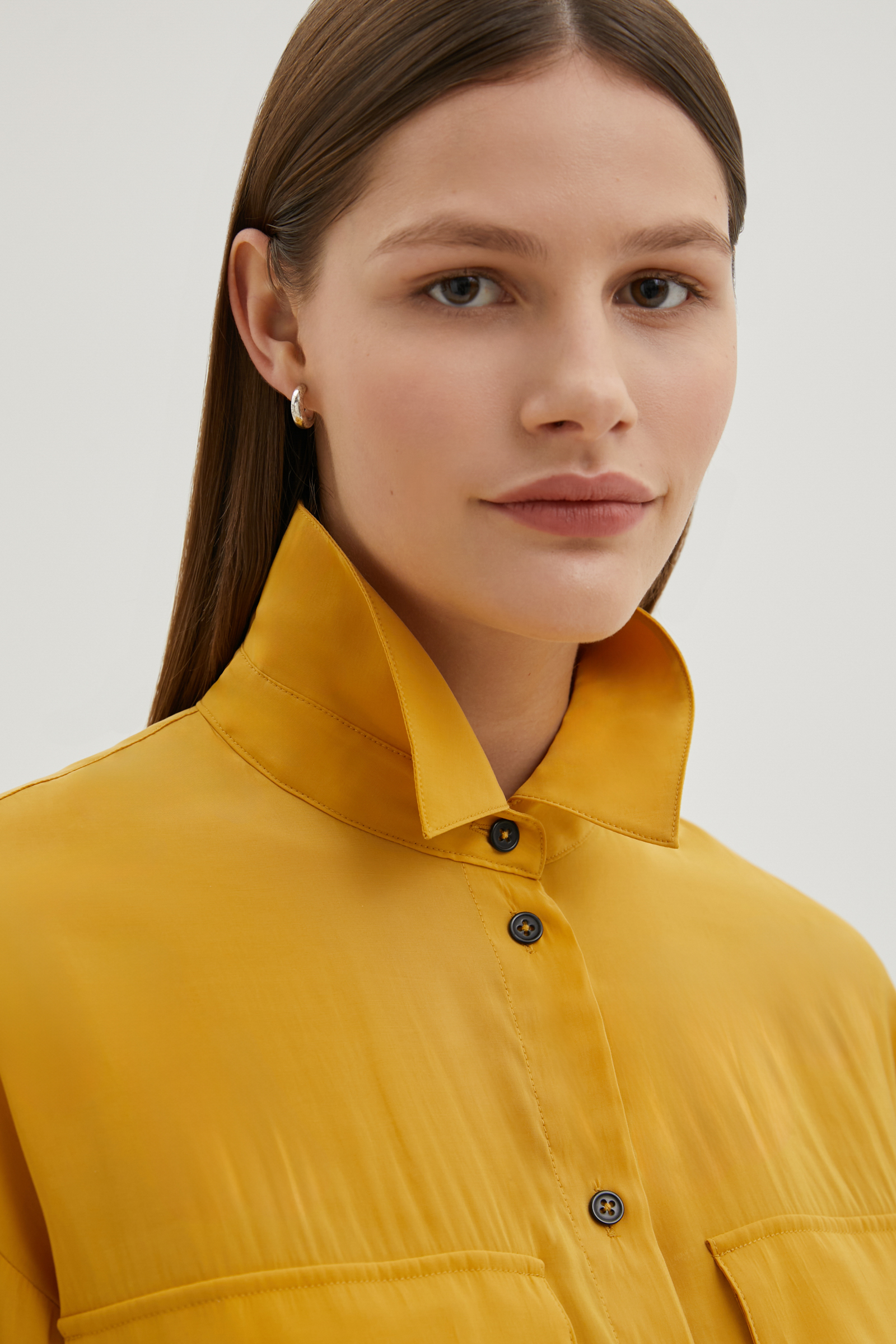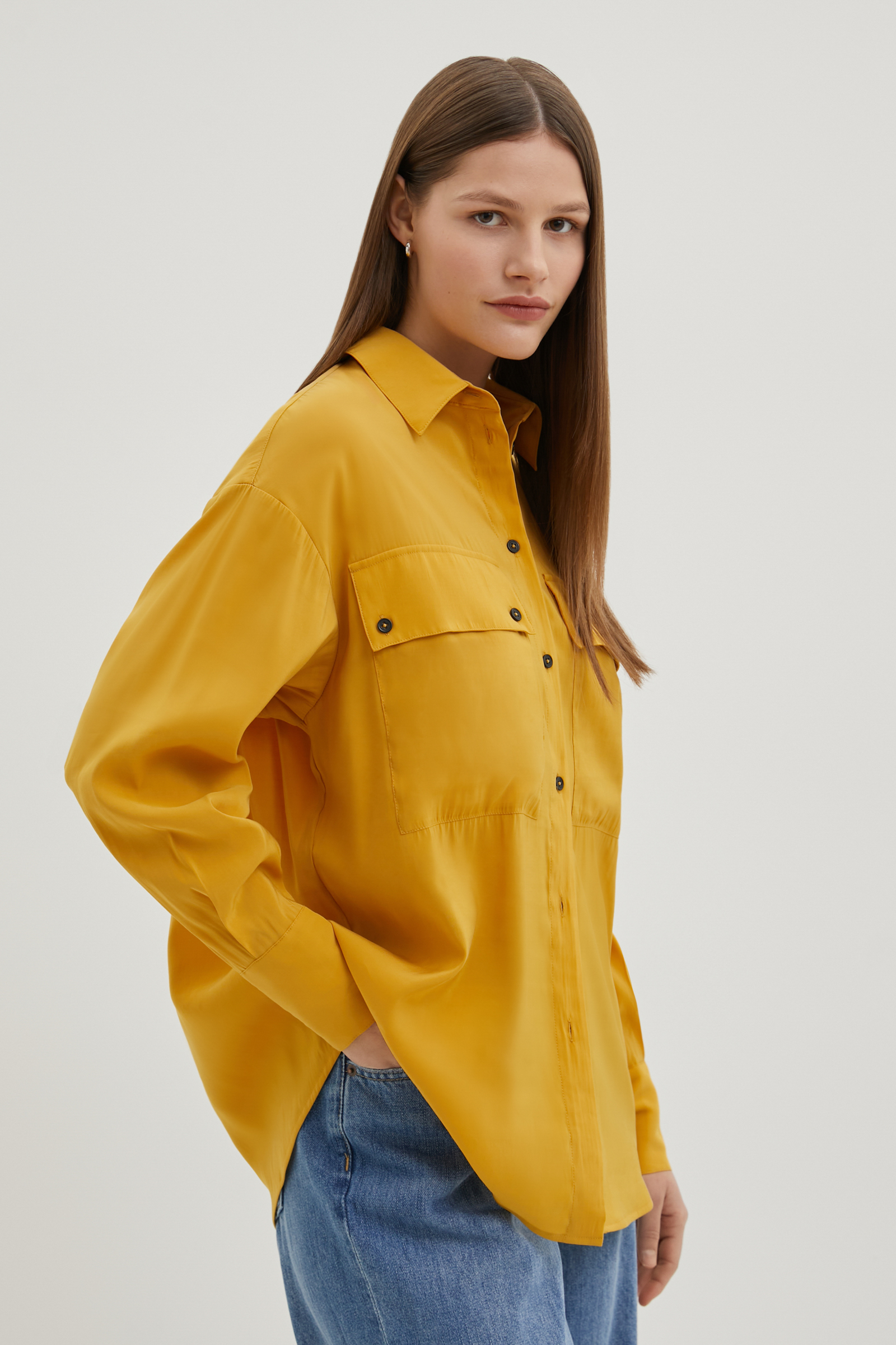 Блузка с воротником-стойкой и нагрудными карманами