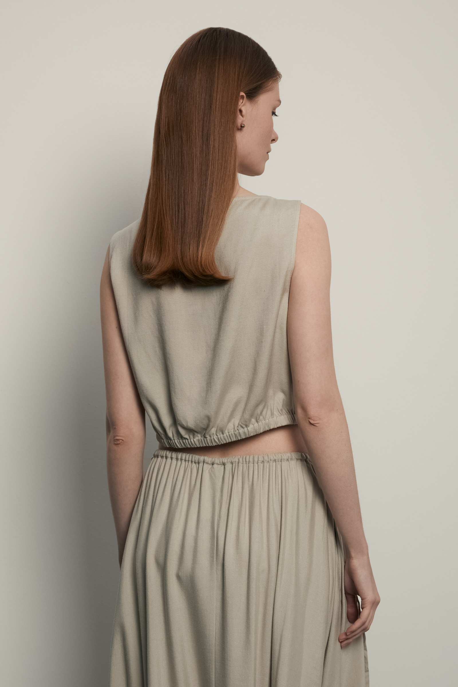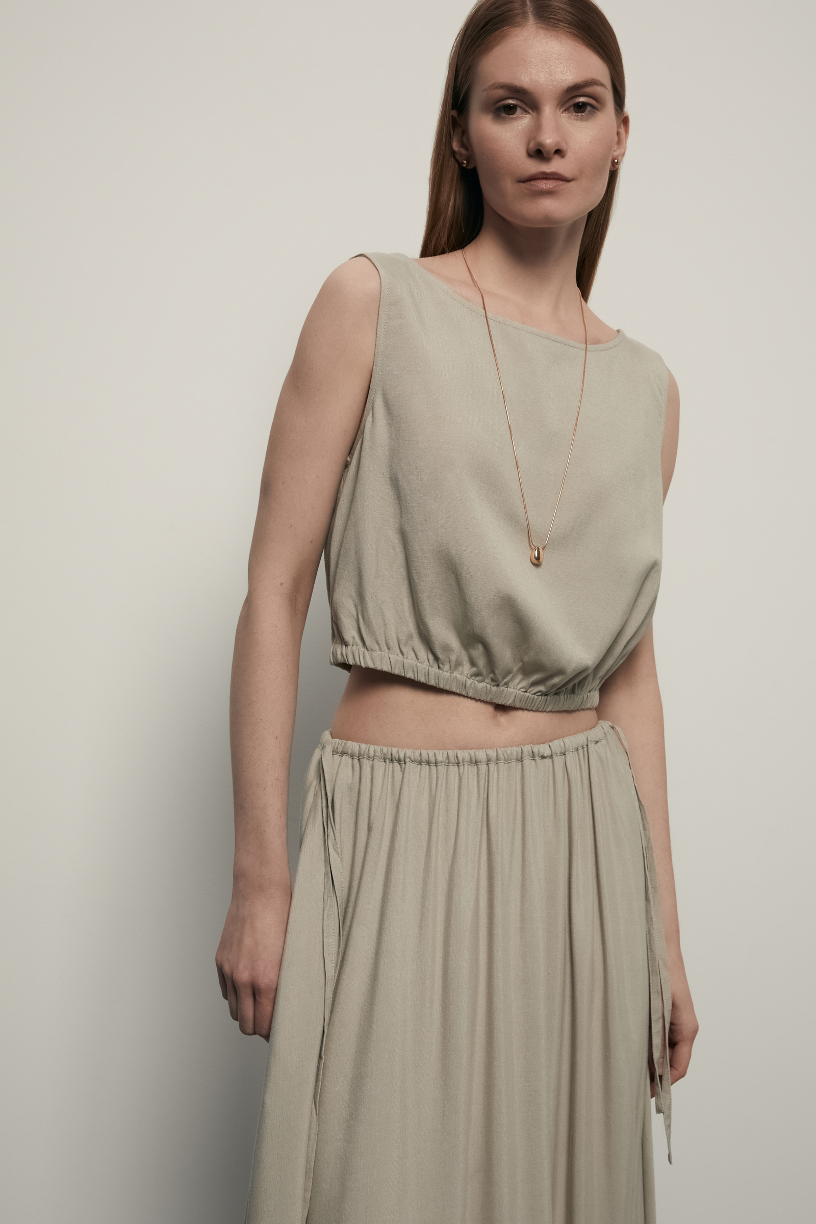 Блузка из хлопка и льна с завязками на поясе