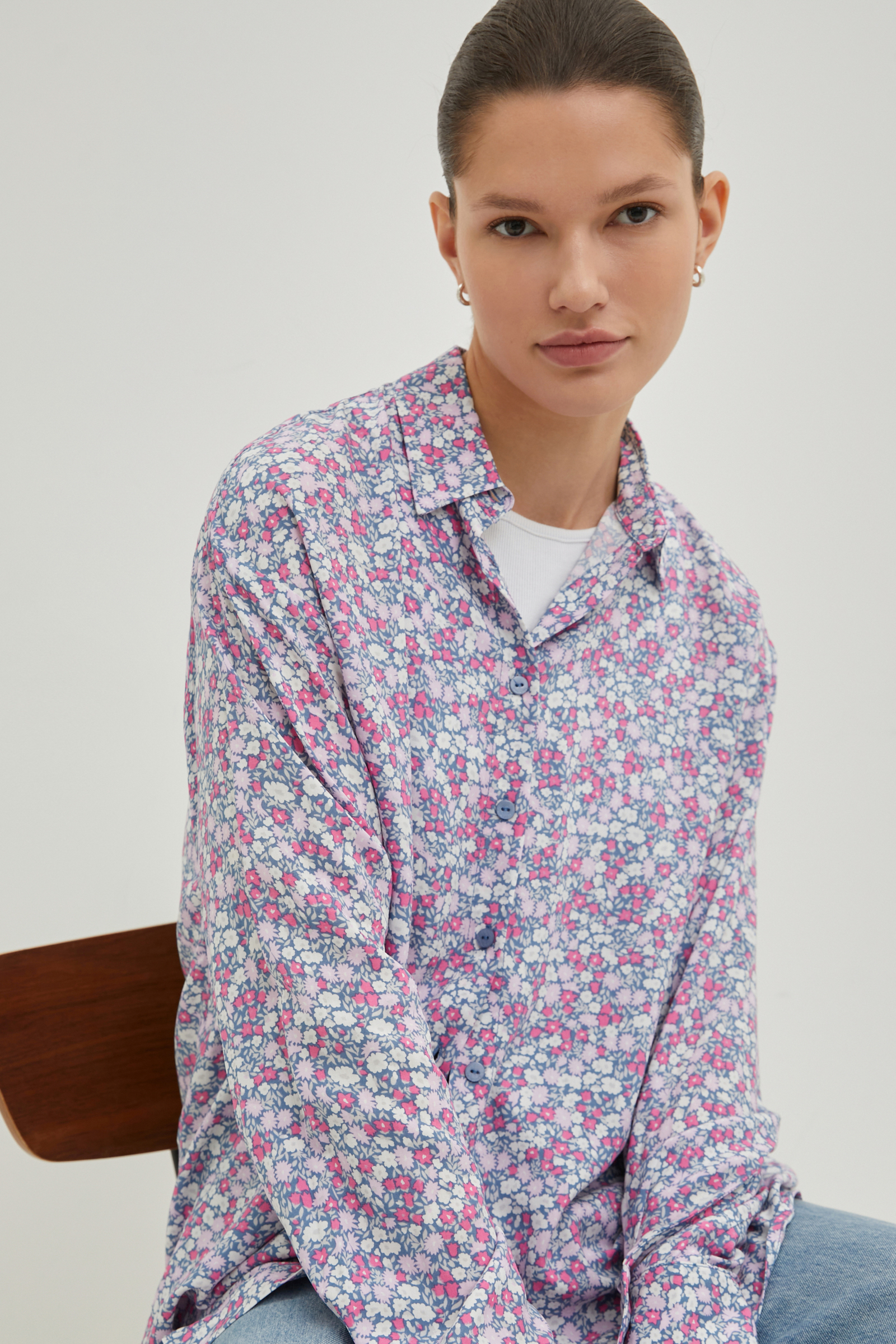 Блузка свободного силуэта с принтом