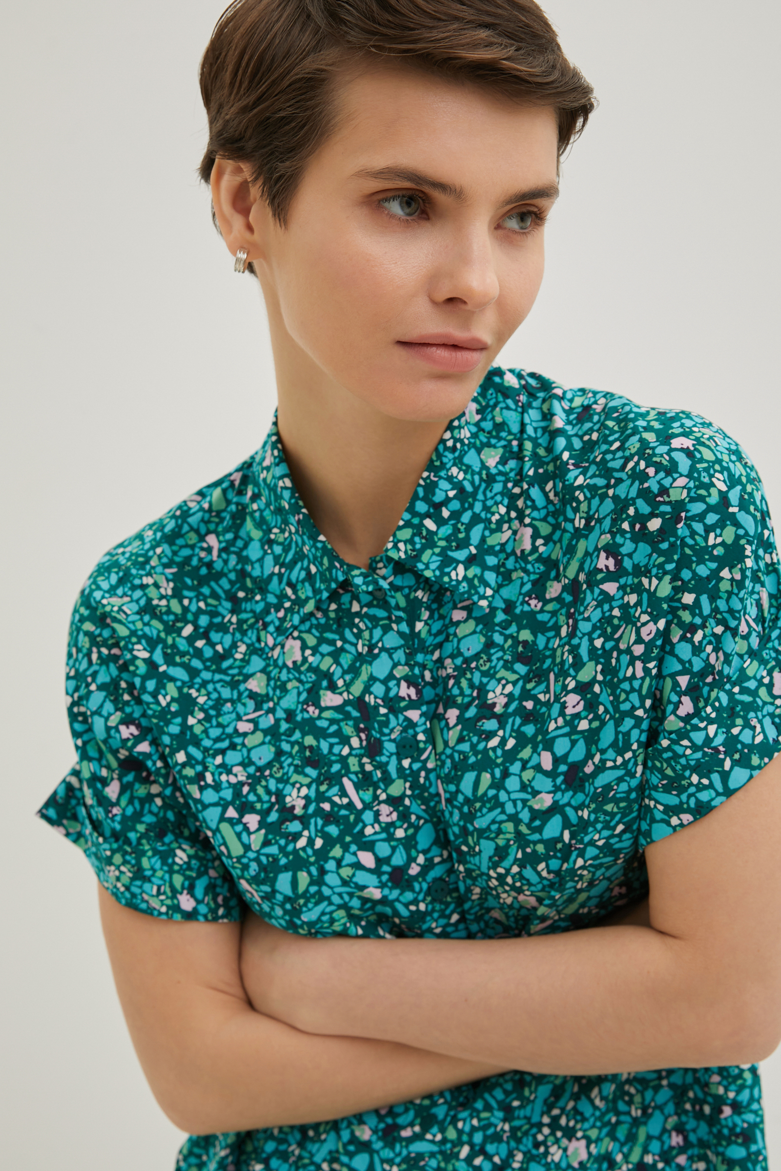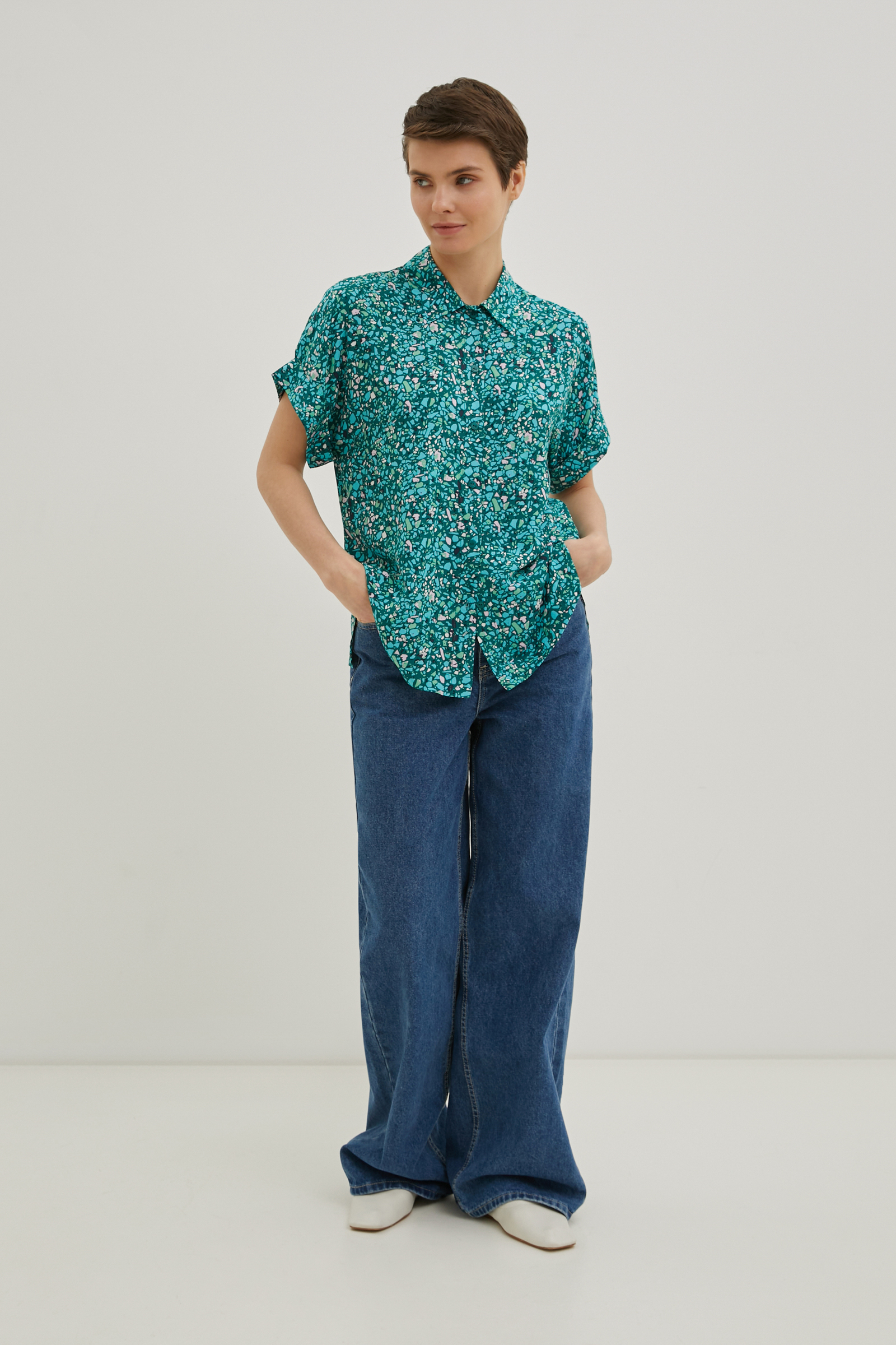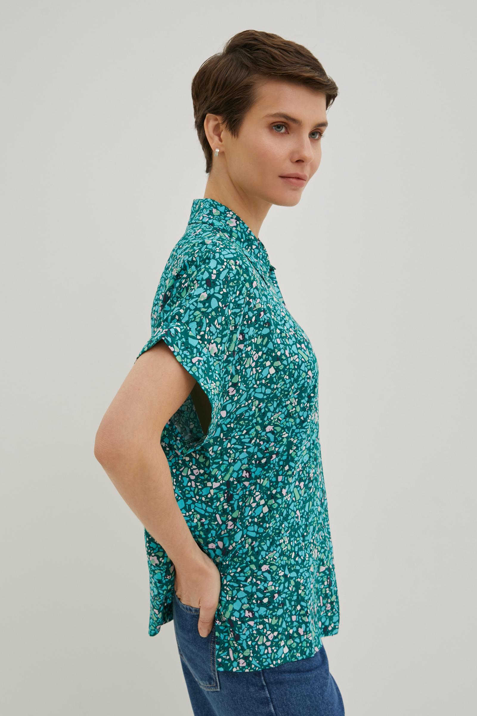 Блузка свободного силуэта с коротким рукавом
