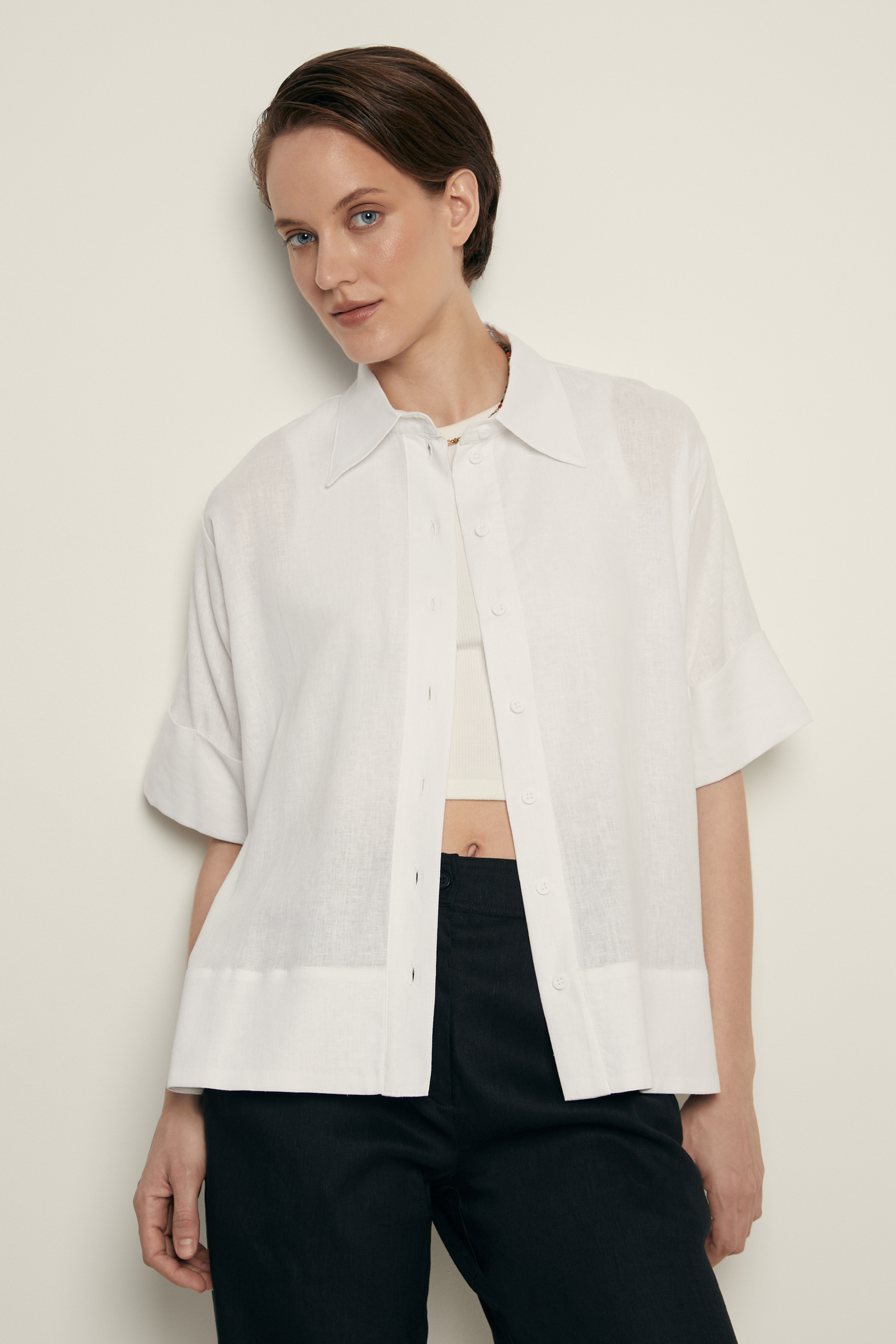 Блузка свободного кроя с добавлением льна