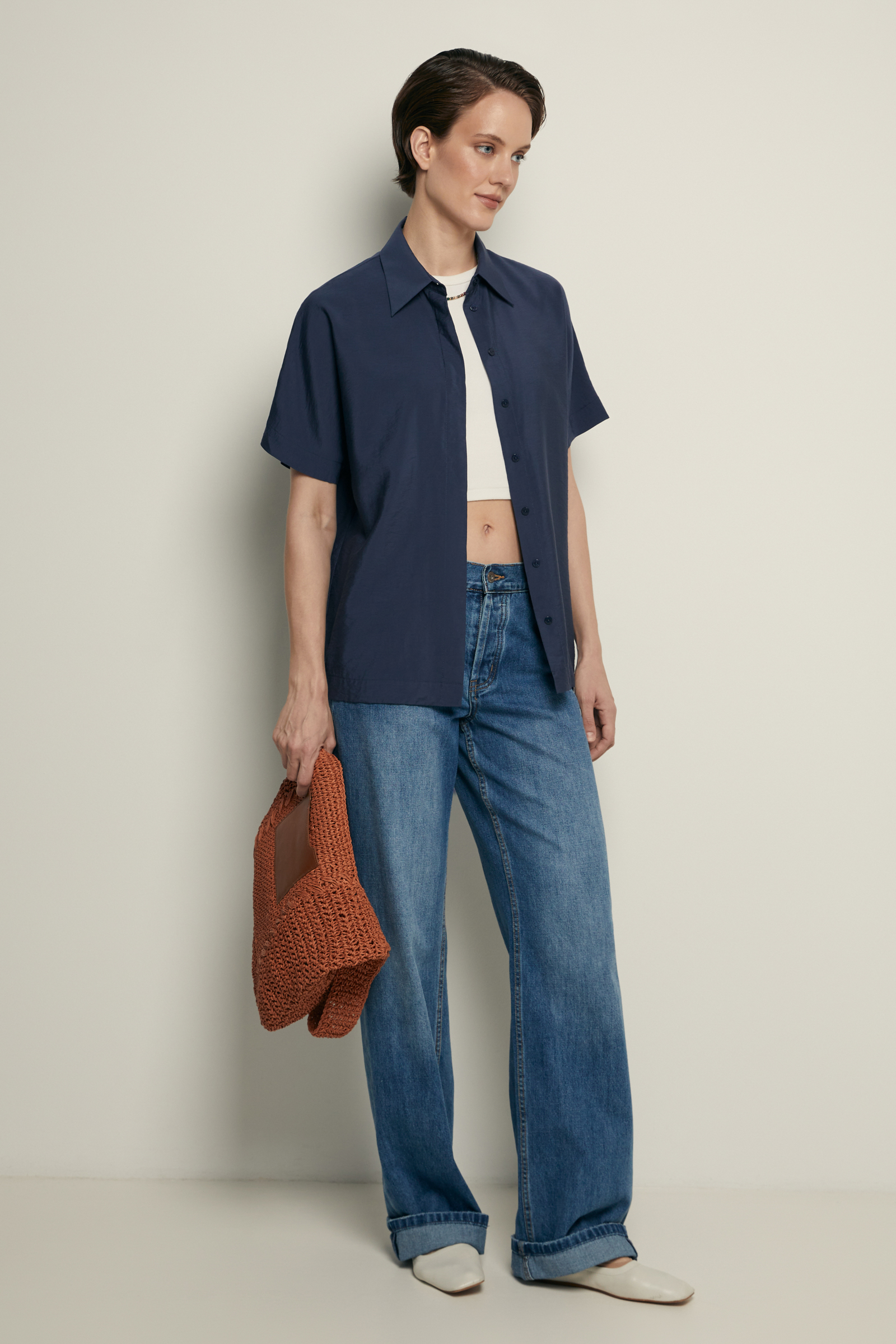 Блузка свободного силуэта с коротким рукавом