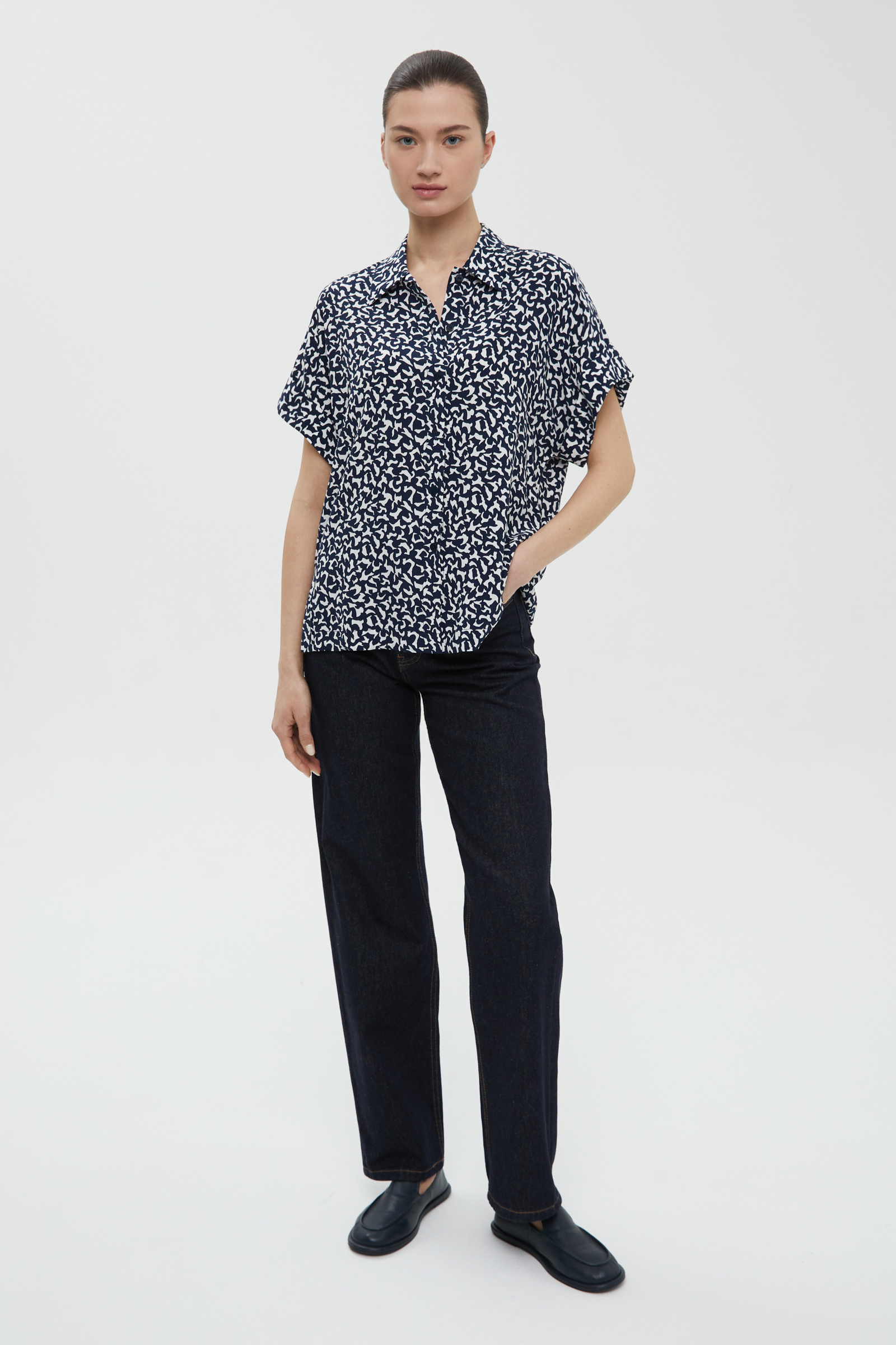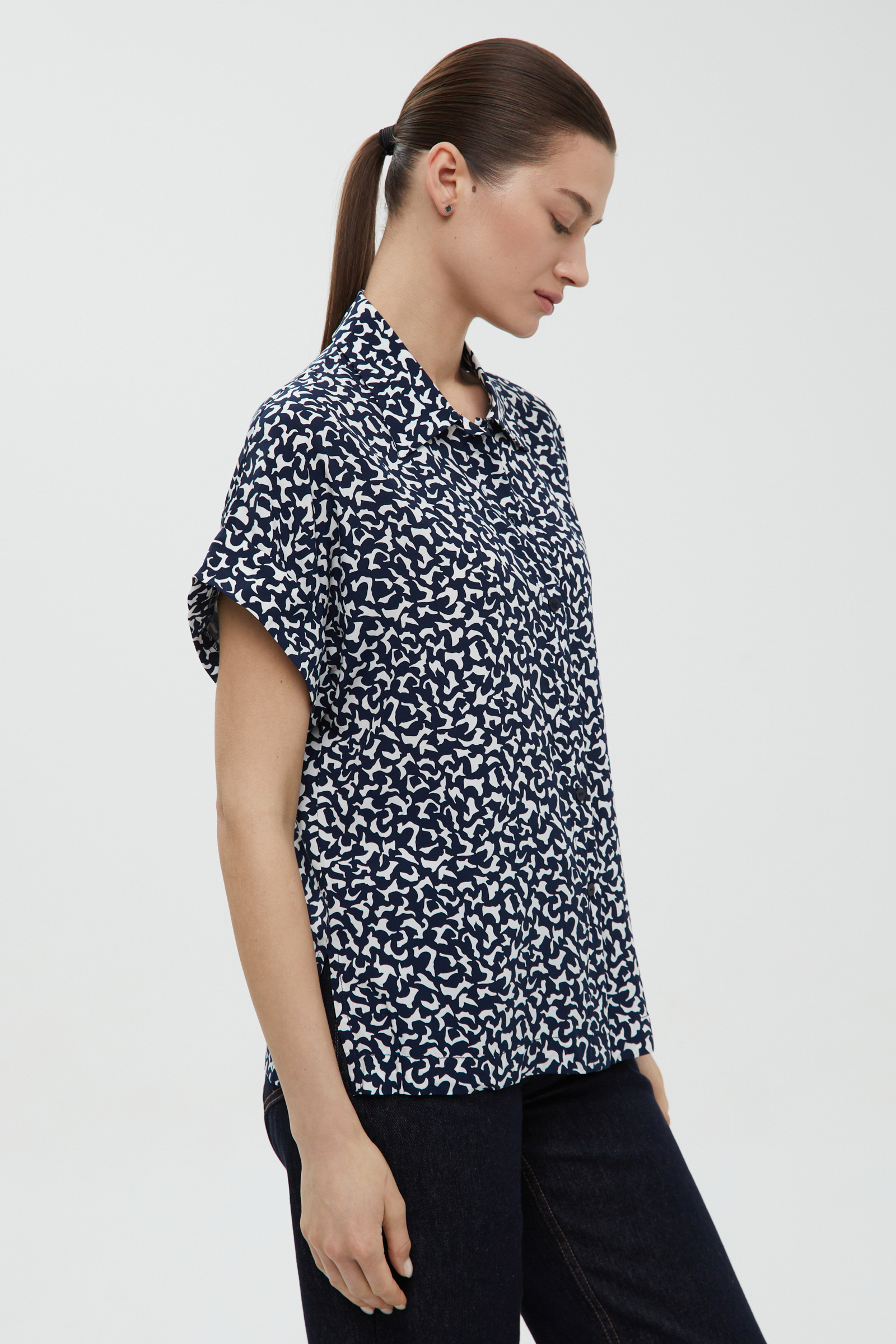 Блузка свободного силуэта с коротким рукавом
