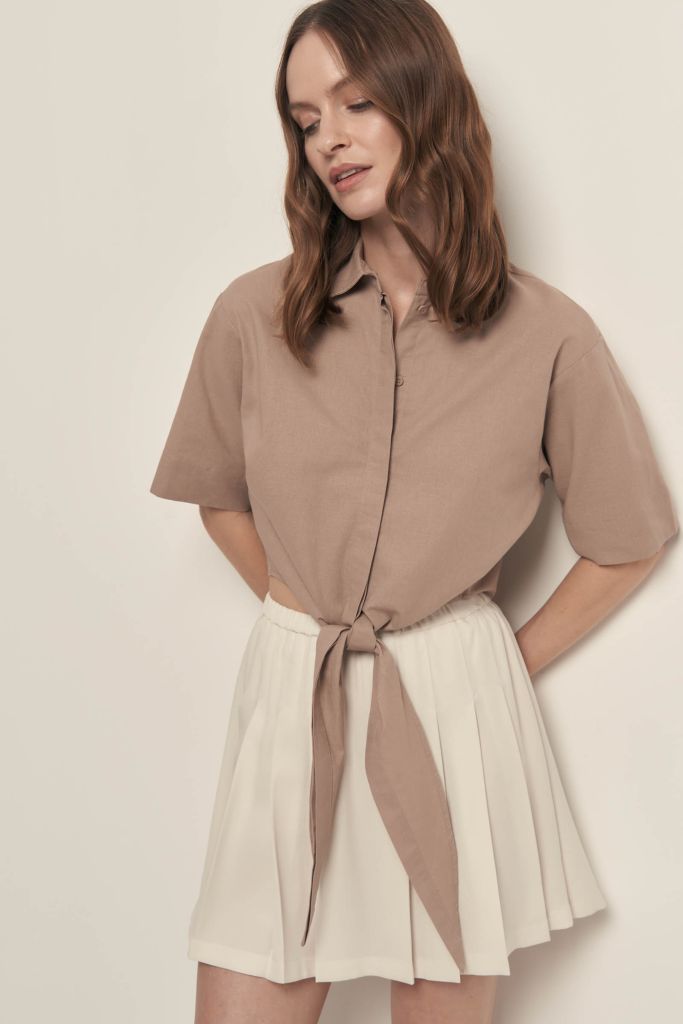 Блузка из хлопка и льна с завязками на поясе