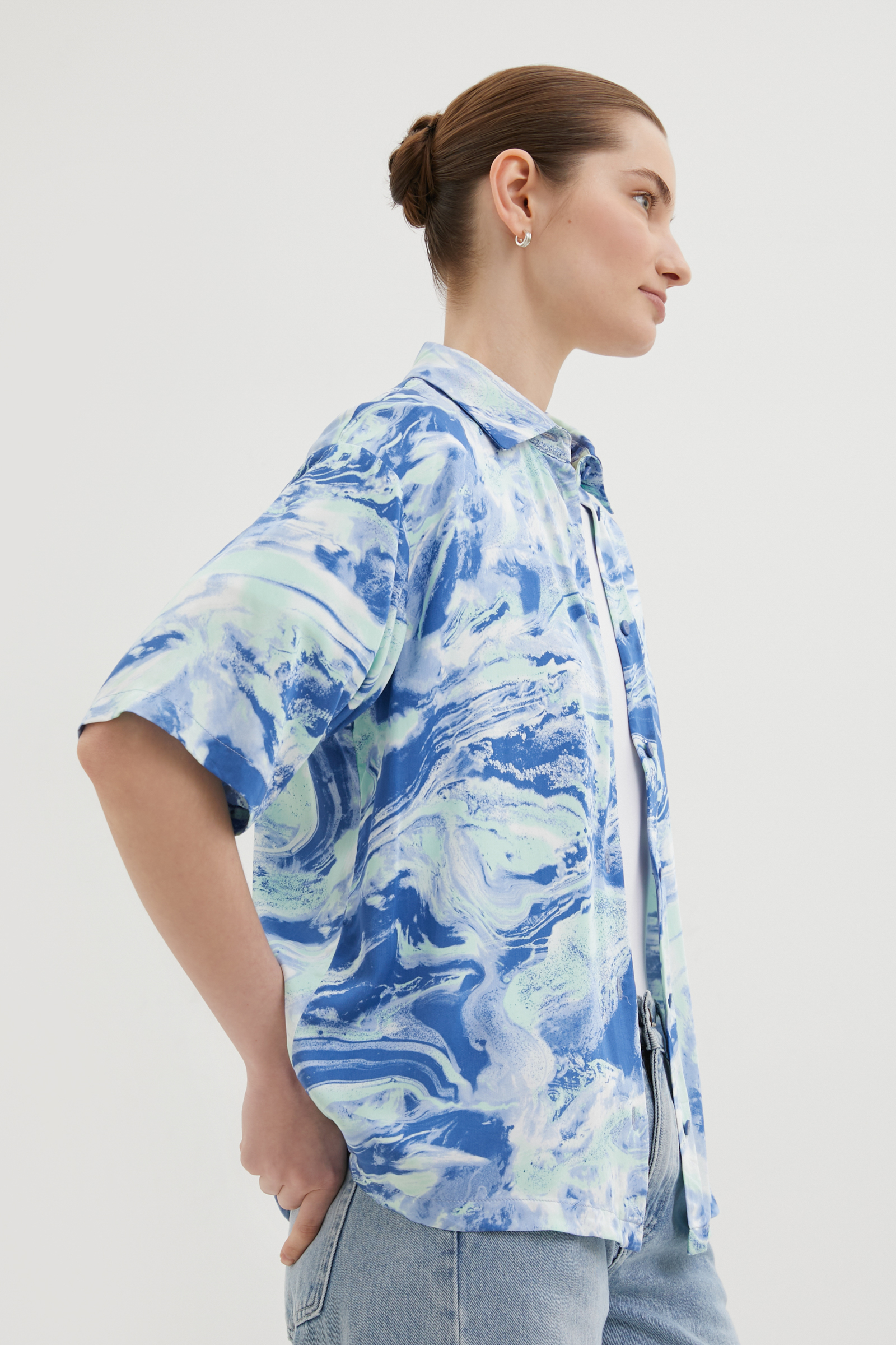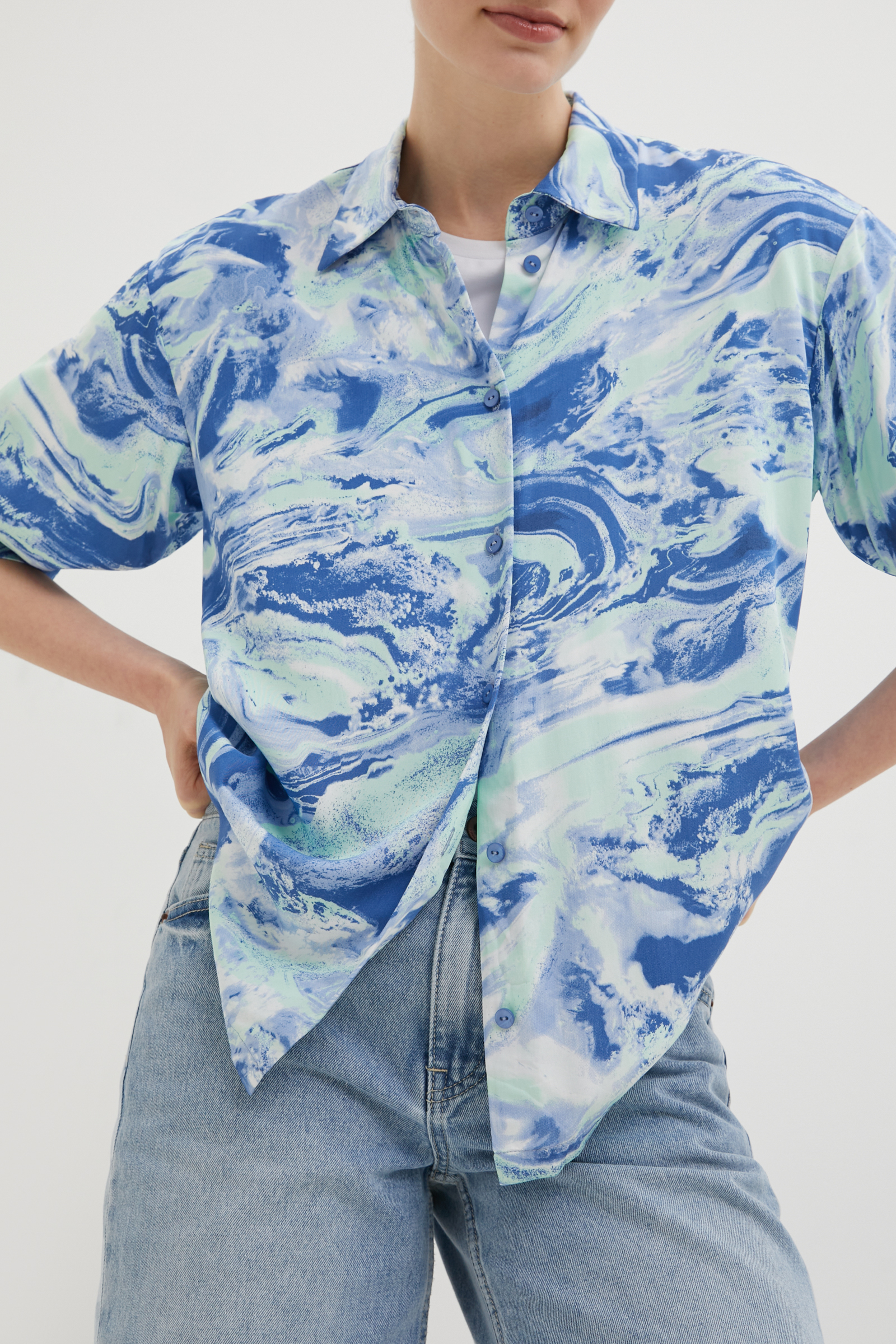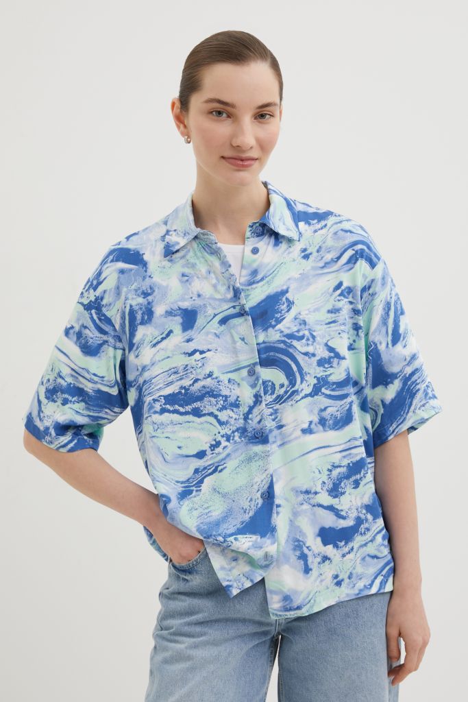 Блузка свободного силуэта с коротким рукавом