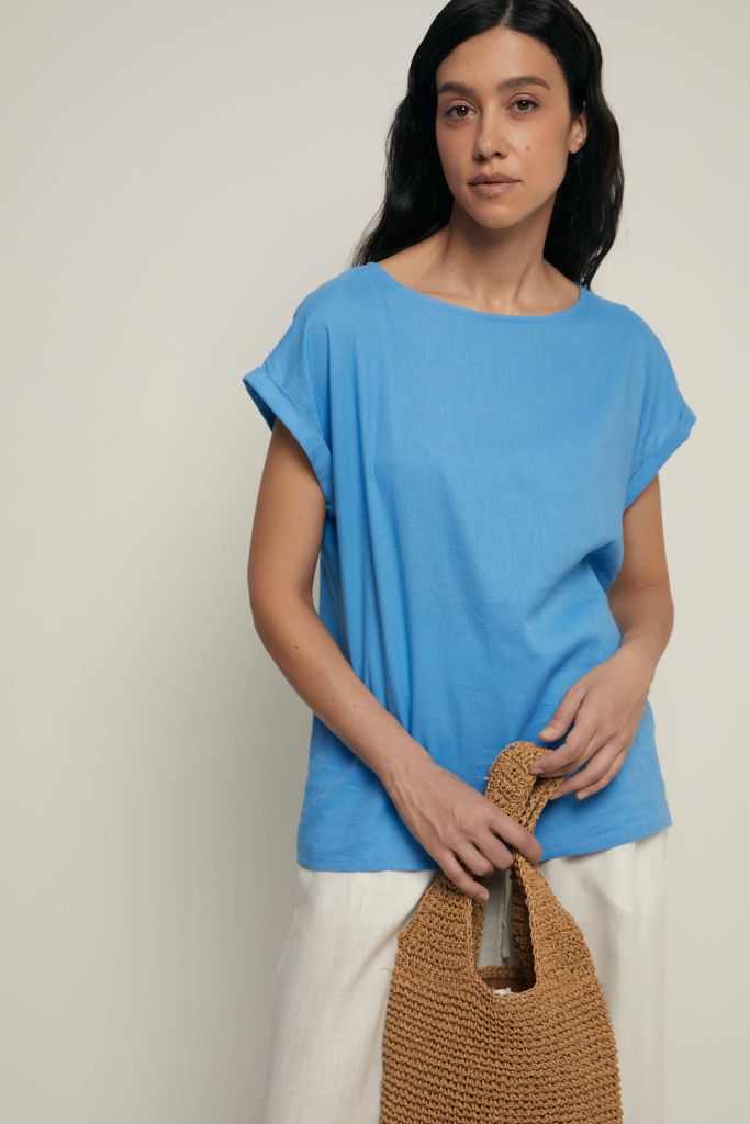 Блузка с коротким рукавом и добавлением льна