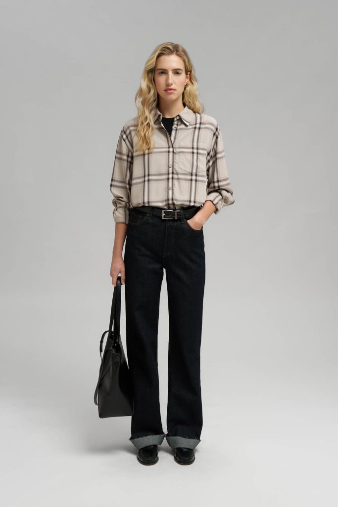 Рубашка объемного кроя в клетку