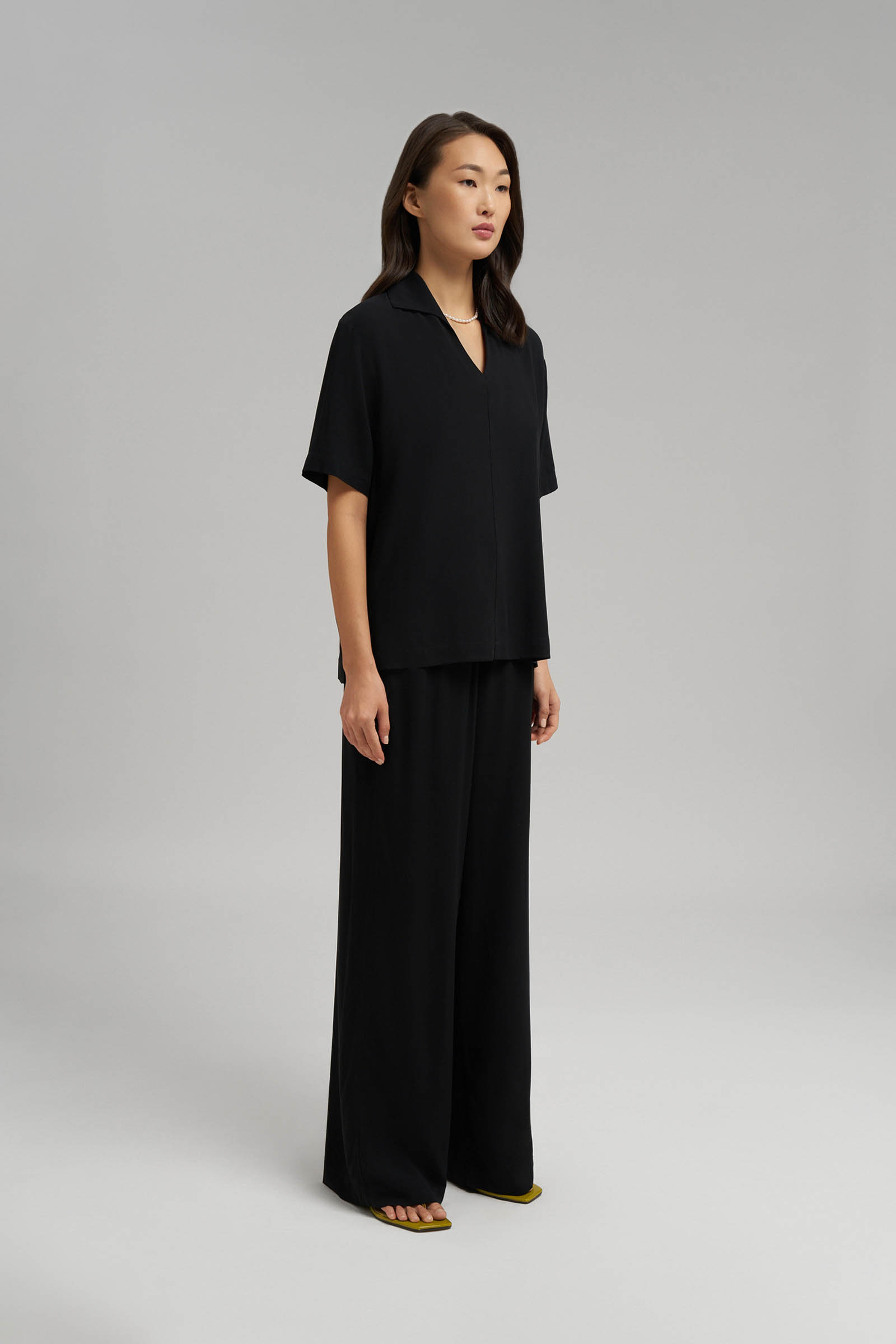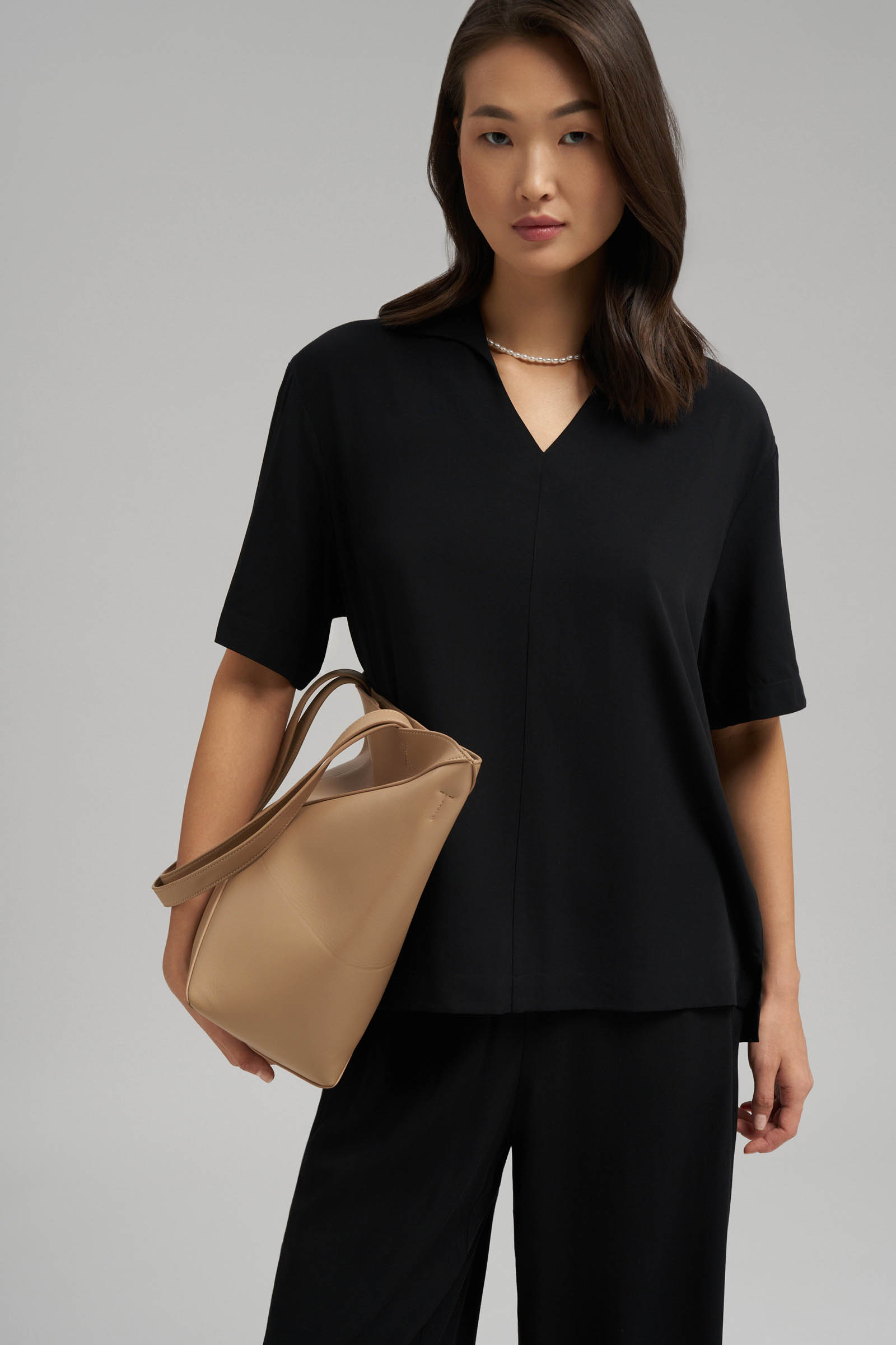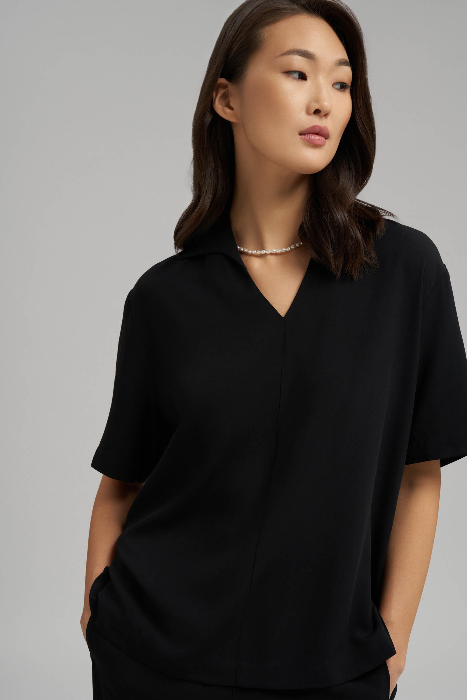 Свободная блузка с v-вырезом и воротником