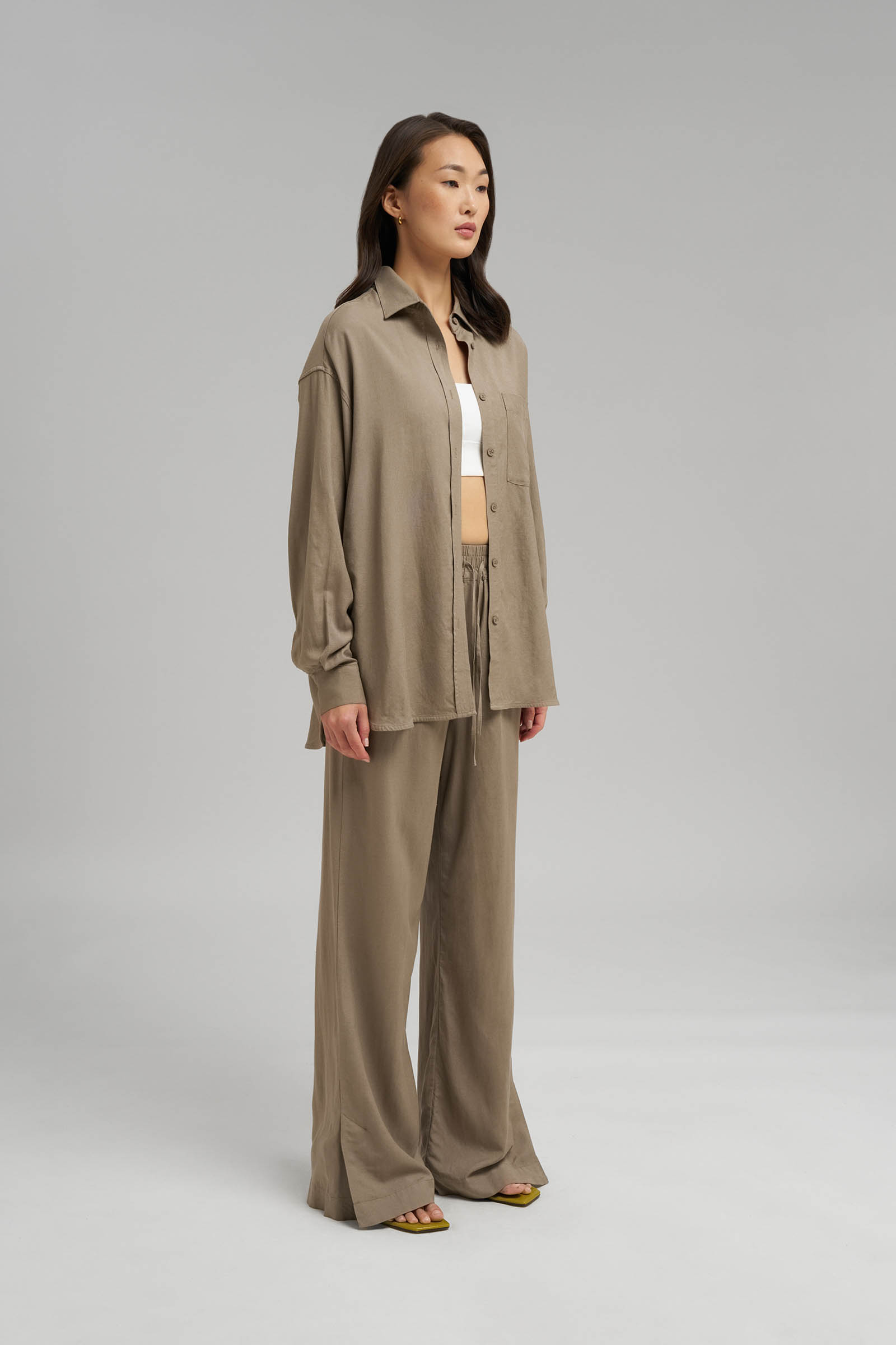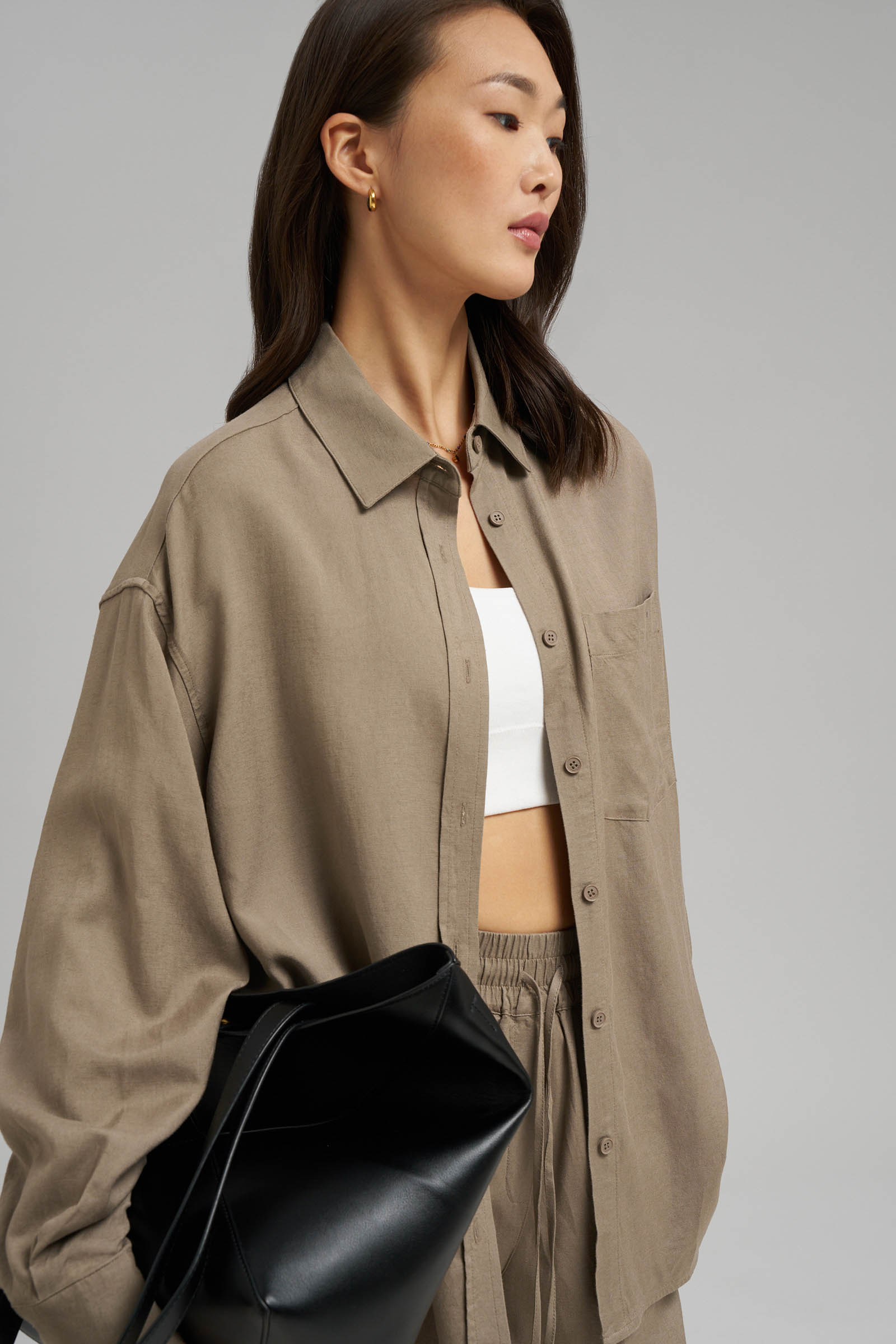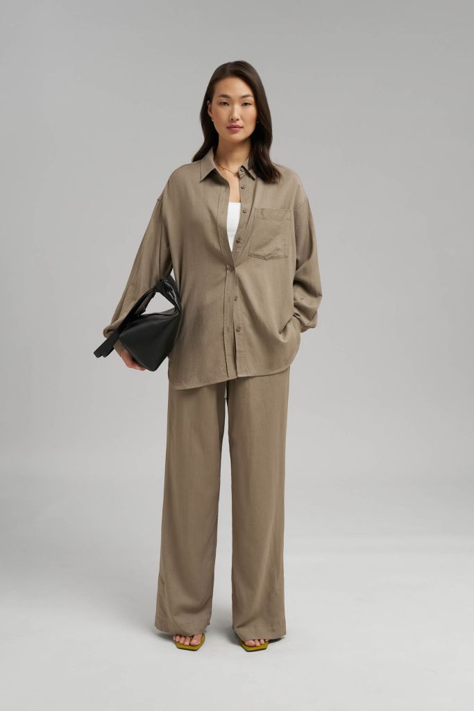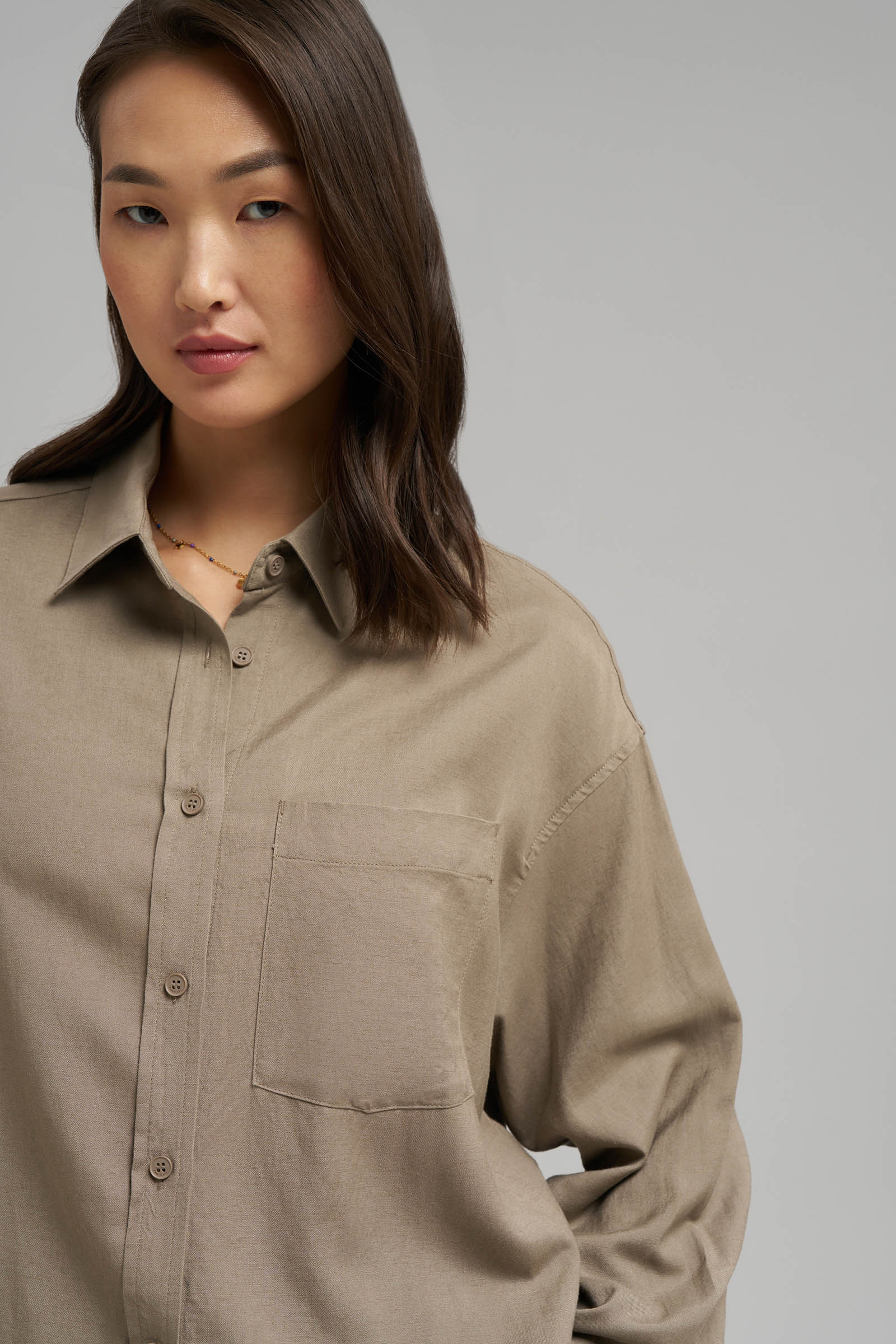 Рубашка объемного кроя со льном