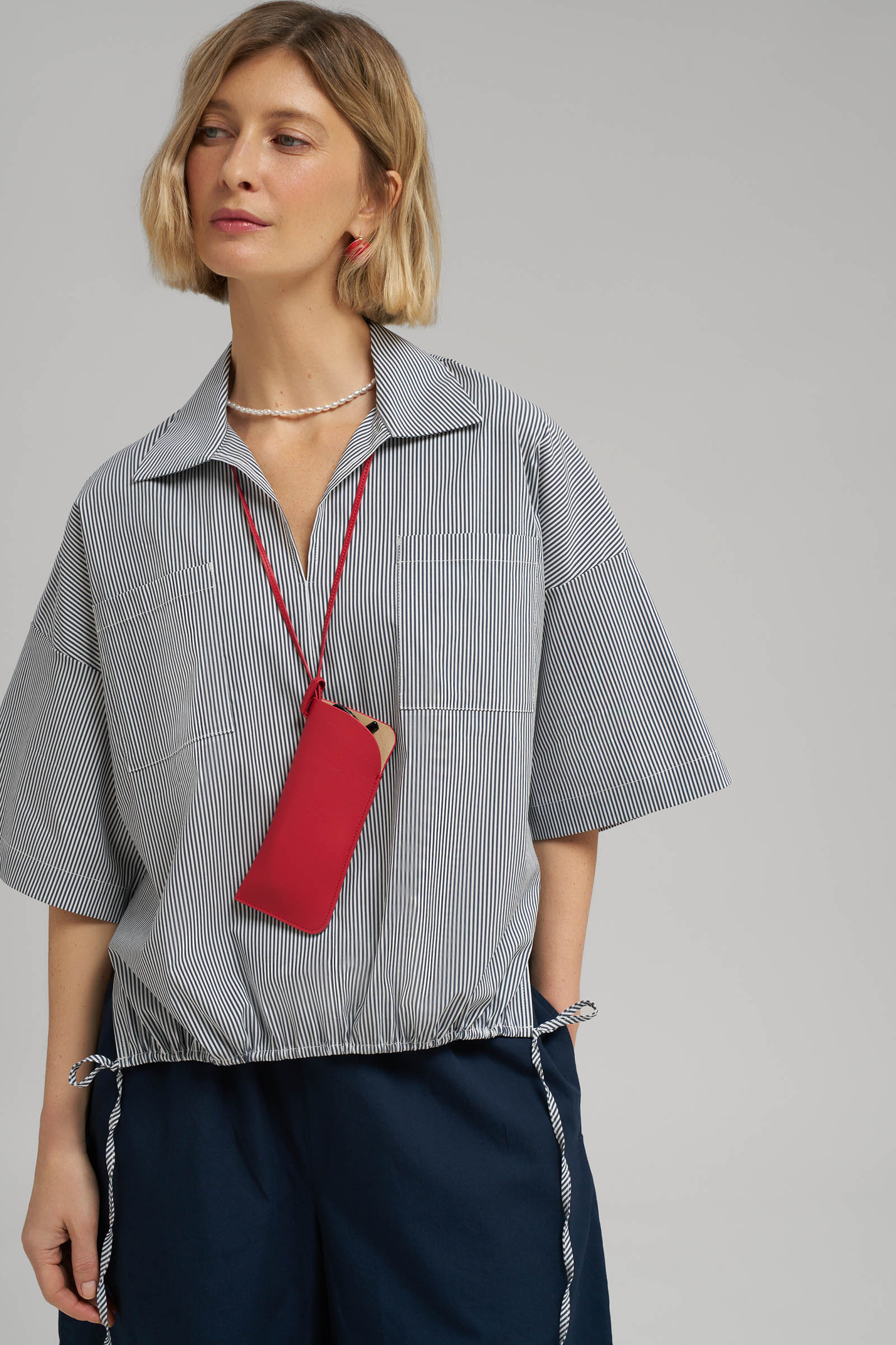 Укороченная блузка из хлопка и льна