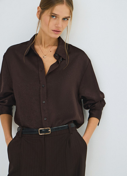 Блузка из жатого сатина, Коричневый