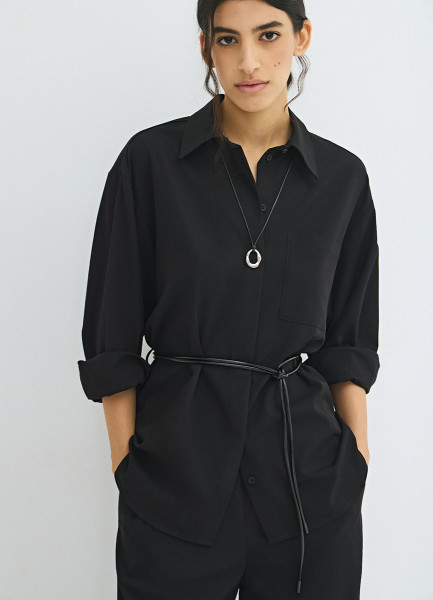 Рубашка с поясом-шнуром, Черный