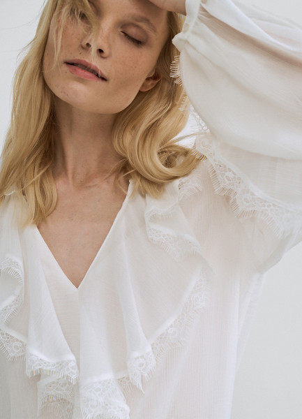 Блузка из шифона с рюшами, Белый