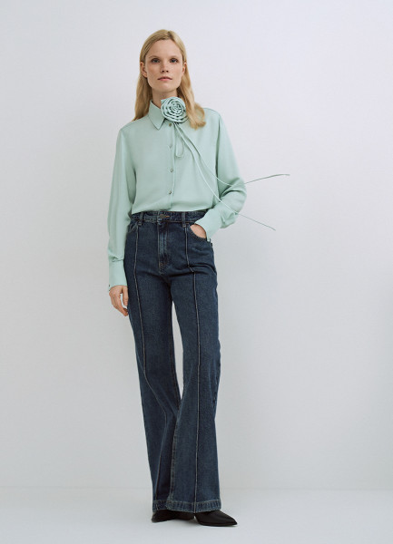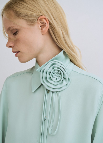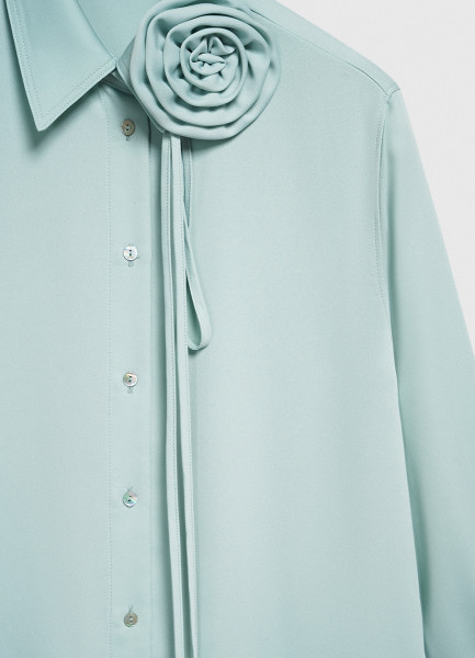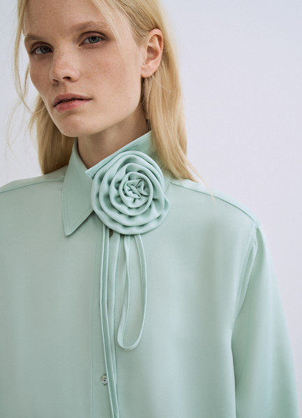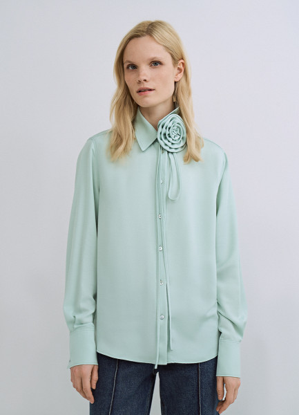 Блузка с декоративным цветком, Зеленый