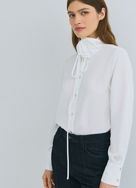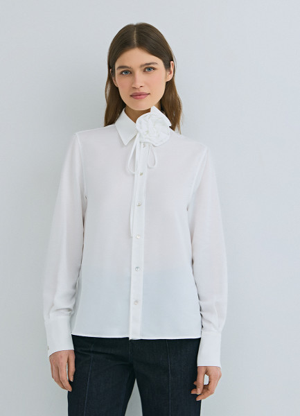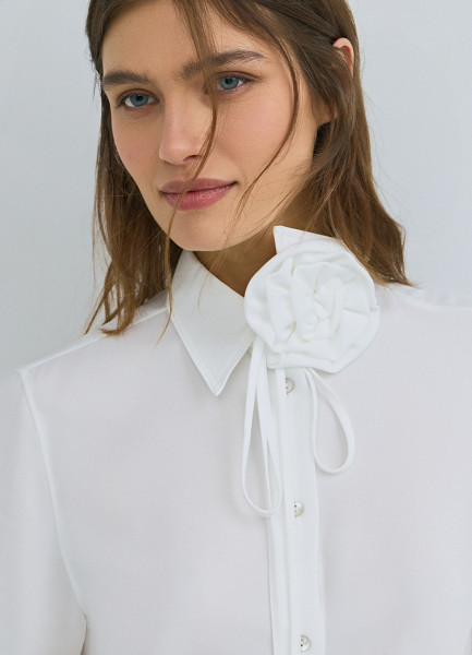 Блузка с декоративным цветком, Белый