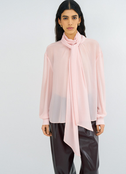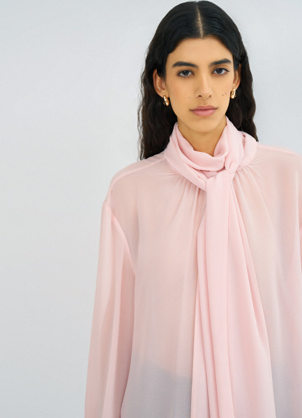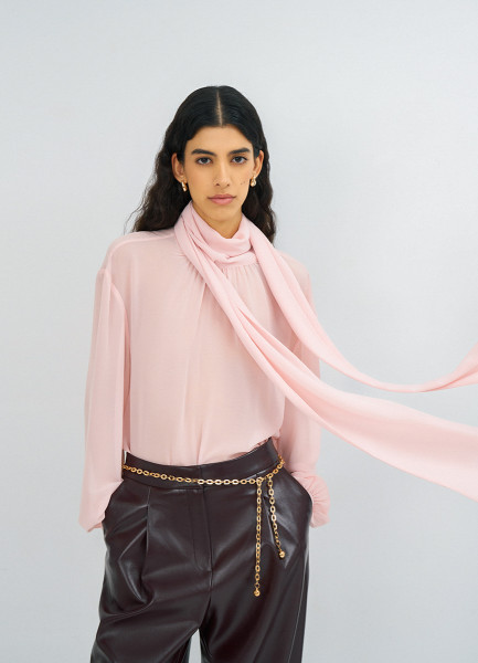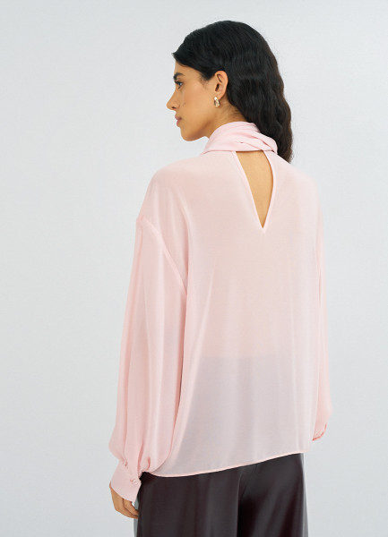 Блузка из шифона с шарфом, Розовый