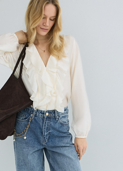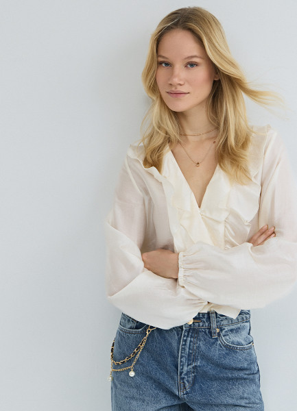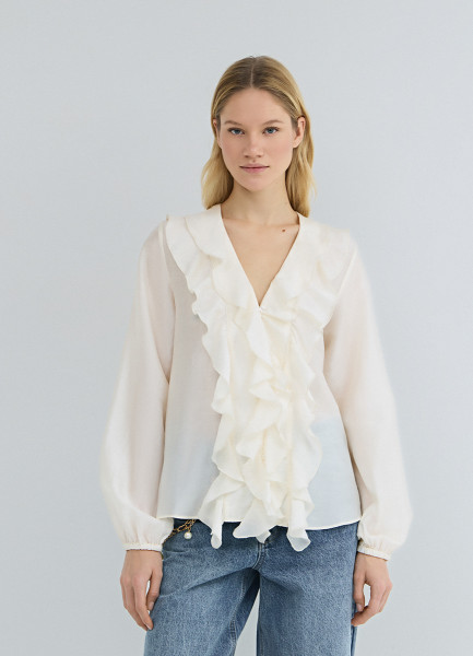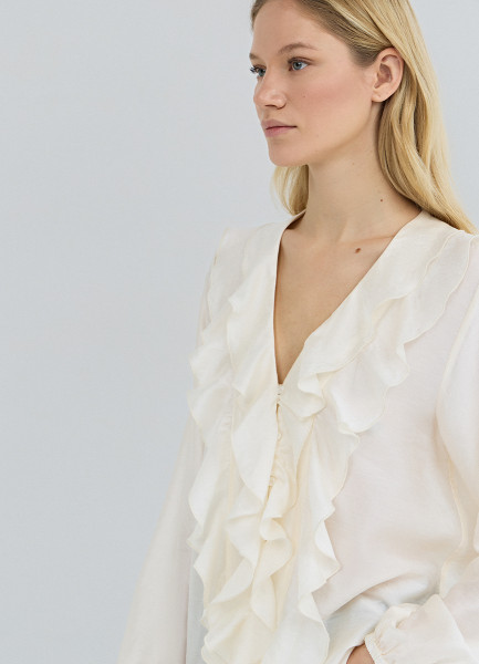 Блузка из лиоцелла с рюшами, Белый