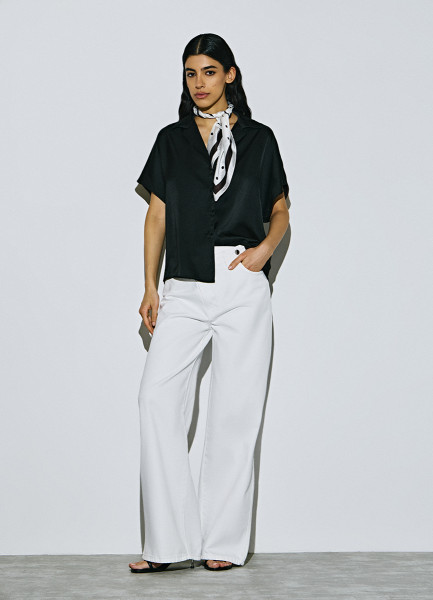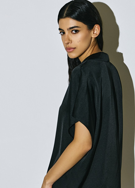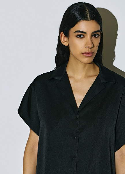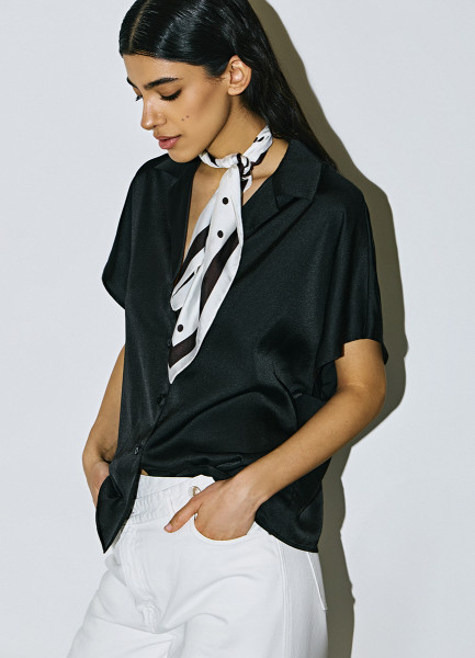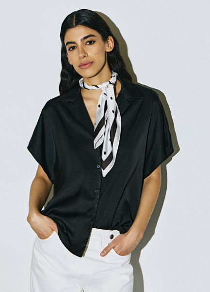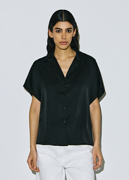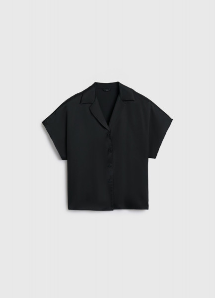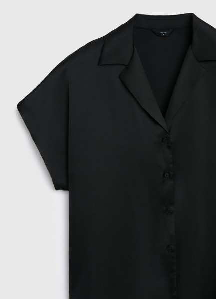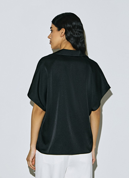 Сатиновая блузка с коротким рукавом, Черный