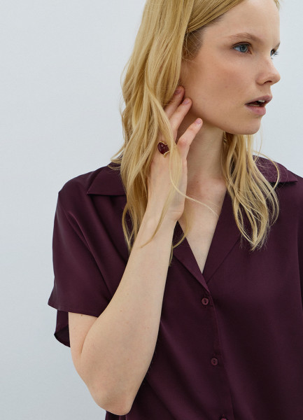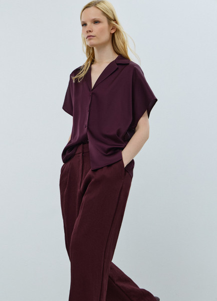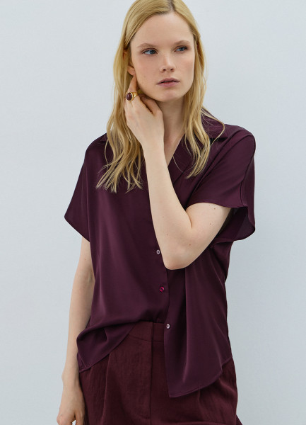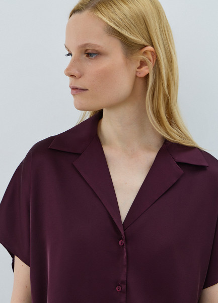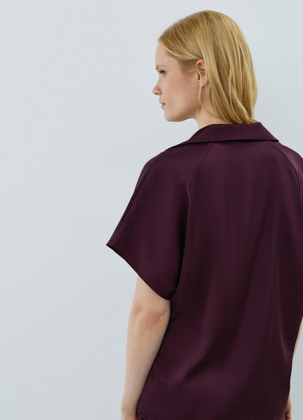 Сатиновая блузка с коротким рукавом, Фиолетовый