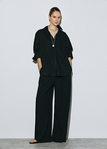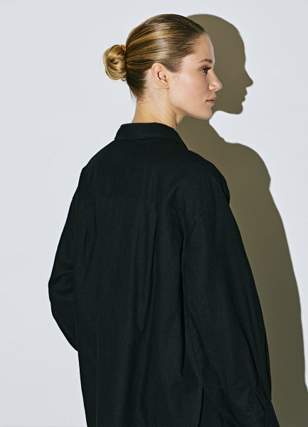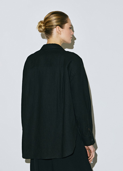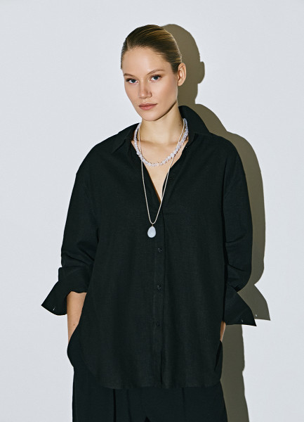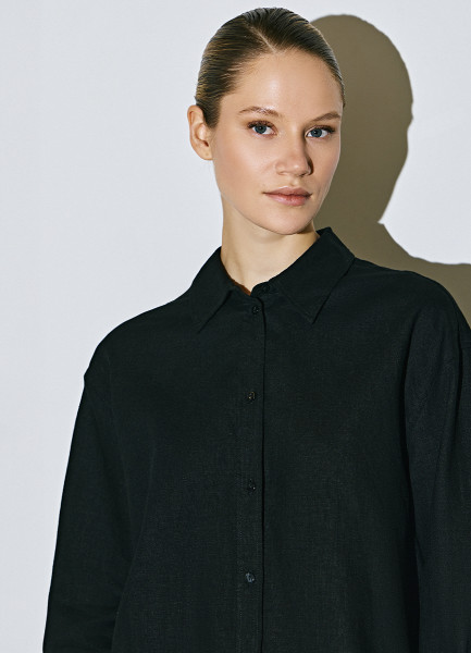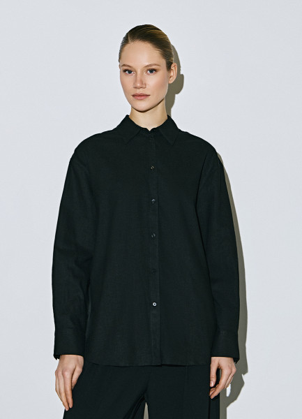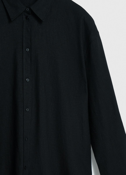 Рубашка с длинным рукавом из смесового льна, Черный