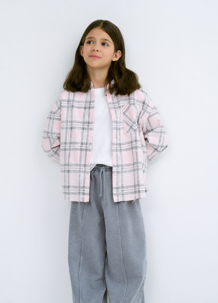 Рубашка в клетку для девочек, Розовый