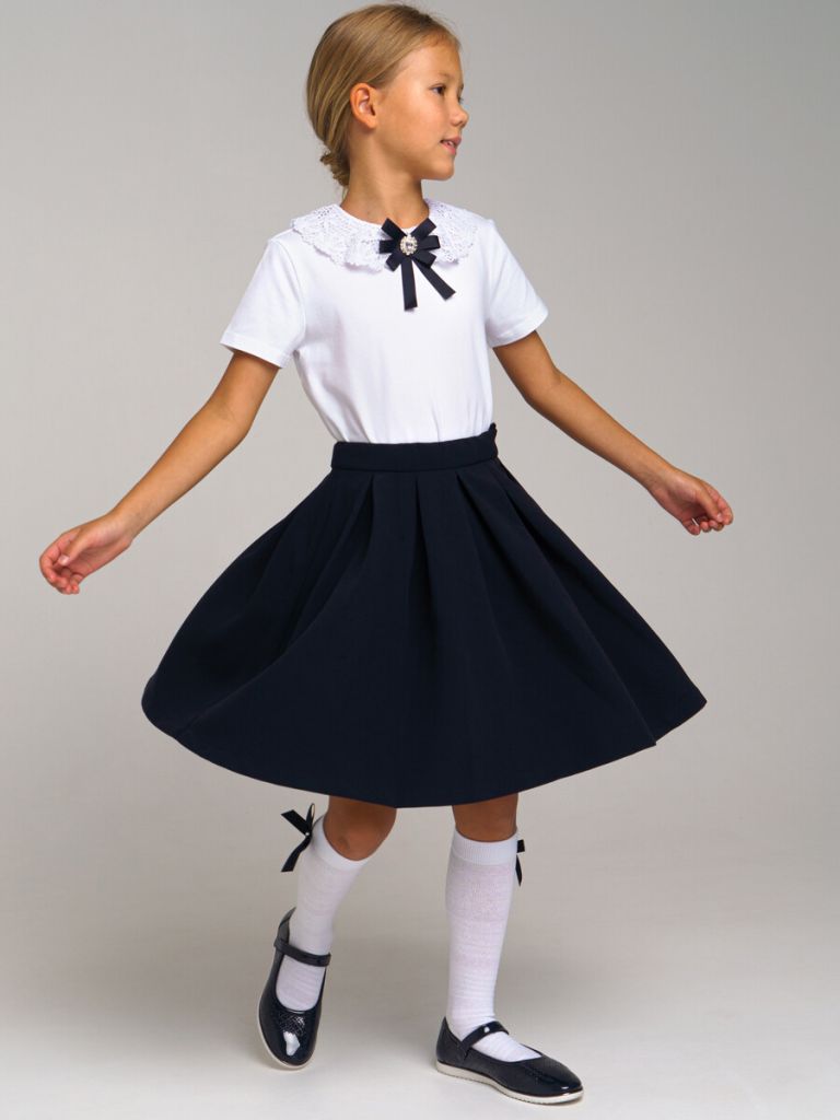 Белая нарядная трикотажная блузка прямого силуэта для девочки подростка - прекрасная альтернатива текстильной блузке или рубашке. Школьная блузка очень мягкая и приятная на ощупь, блузка хорошо держит форму, комфортна в носке и проста уходе. Высокое содержание хлопка 95%. Благодаря наличию эластана в составе ткани, изделие проще в уходе и держит форму. Блузка в школу с коротким рукавом и воротником из кружева разнообразит повседневные образы школьницы. Застежка на спине на пуговицу.