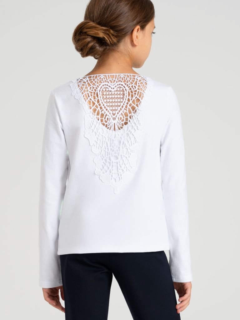 Белая блузка прямого силуэта для девочки подростка - прекрасная альтернатива текстильной блузке или рубашке. Школьная блузка очень мягкая и приятная на ощупь, блузка хорошо держит форму, проста в эксплуатации и уходе. Высокое содержание хлопка 95%. Рубашка в школу с длинным рукавом и декором из кружева разнообразит повседневные образы школьницы.
