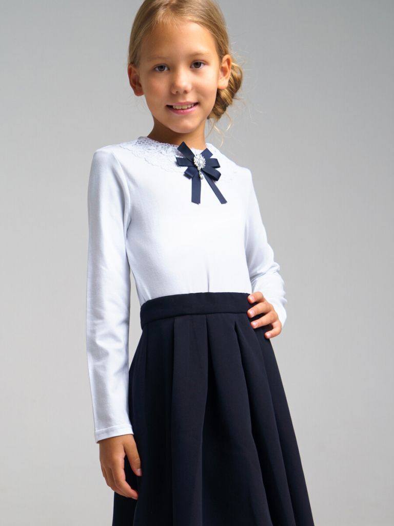 Белая нарядная трикотажная блузка прямого силуэта для девочки подростка - прекрасная альтернатива текстильной блузке или рубашке. Школьная блузка очень мягкая и приятная на ощупь, блузка хорошо держит форму, комфортна в носке и проста уходе. Высокое содержание хлопка 95%, а благодаря наличию эластана в составе ткани, изделие проще в уходе и держит форму. Блузка в школу с длинным рукавом и воротником из кружева разнообразит повседневные образы школьницы. Застежка на спине на пуговицу.