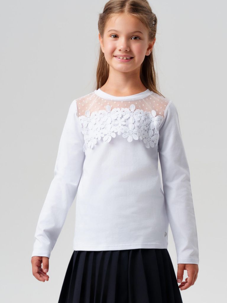 Эта нарядная белая блузка для девочки с длинным рукавом — идеальный выбор для школы, праздников и особых случаев. Модель выполнена из мягкого хлопкового трикотажа с добавлением эластана — материал отлично пропускает воздух, комфортно прилегает к телу и долго сохраняет аккуратный внешний вид. Такая блузка не вытягивается и легко переносит частые стирки.
