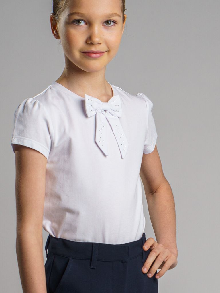 Белая трикотажная блузка прямого силуэта для девочки подростка - прекрасная альтернатива текстильной блузке или рубашке. Школьная блузка очень мягкая и приятная на ощупь, блузка хорошо держит форму, проста в эксплуатации и уходе. Высокое содержание хлопка 95%. Благодаря наличию эластана в составе ткани изделие проще в уходе и держит форму. Рубашка в школу с коротким рукавом разнообразит повседневные школьные образы.