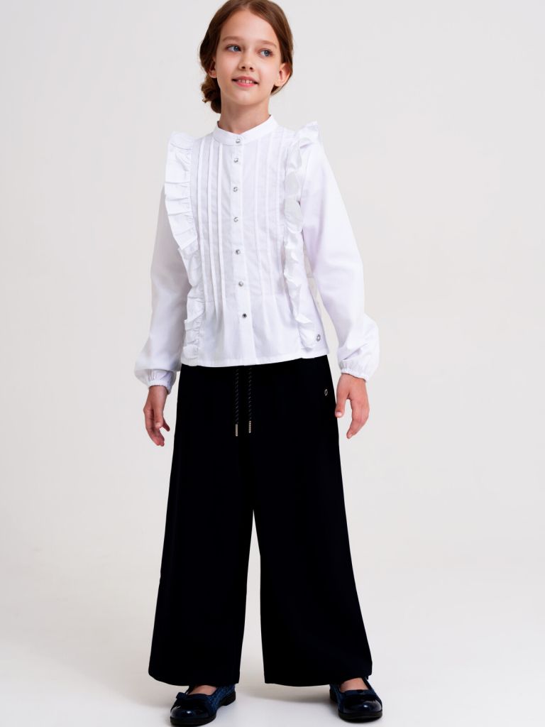 Совет по стилю: эта белая хлопковая блузка легко комбинируется с юбками, сарафанами, классическими брюками и жилетами из школьной коллекции PlayToday. Добавьте строгий жакет или кардиган — и готов образ для официальных мероприятий.