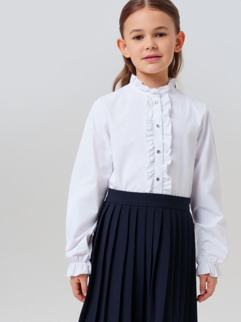 Совет по стилю: такая школьная блузка для девочки отлично сочетается с классическими юбками, сарафанами или брюками из школьного гардероба PlayToday. Добавьте бант или брошь — и наряд на 1 сентября или выпускной готов.
