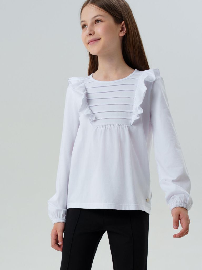 Модная белая школьная блузка для девочек от PlayToday — любимая вещь в гардеробе каждой школьницы. Баланс стиля, комфорта и практичности.