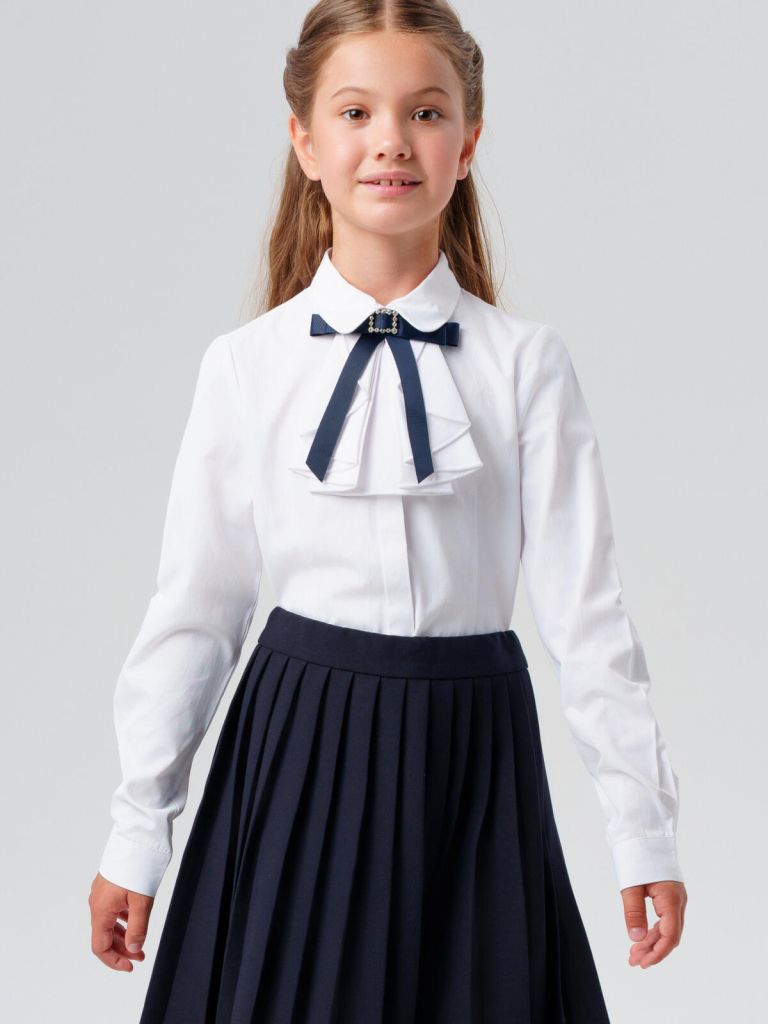 Эта школьная белая блузка для девочки с длинным рукавом — универсальная основа для любого школьного гардероба. Стильная и одновременно практичная модель подойдёт как для будних занятий, так и для торжественных событий — 1 сентября, выпускных, олимпиад или классных собраний.