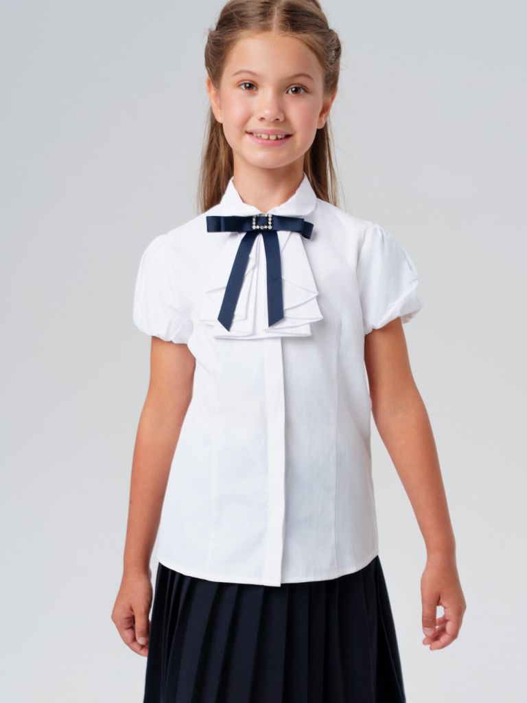Белая блузка с коротким рукавом для девочки-подростка от бренда PlayToday из школьной коллекции — стильный и универсальный элемент для учебных будней и торжественных школьных событий.