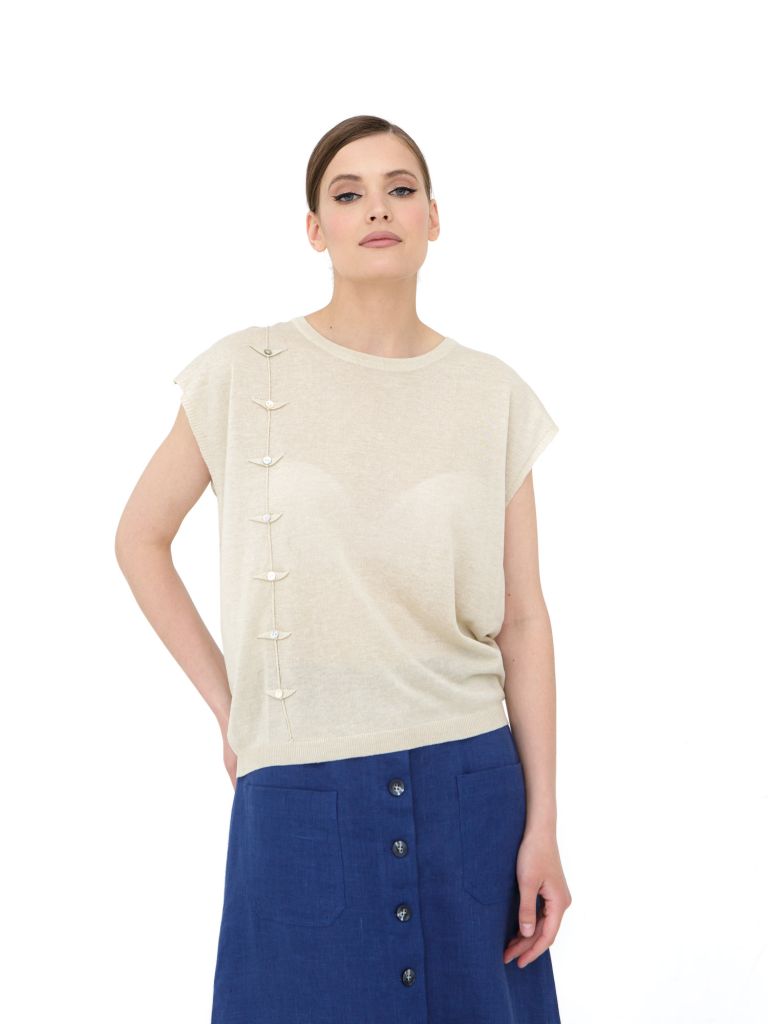 Изысканная простота и природная мягкость – женский топ молочного цвета из премиальной смеси льна, хлопка и вискозы (40%/35%/25%) станет вашим любимым базовым элементом для создания разнообразных образов. Это воплощение комфорта и элегантности в натуральном исполнении.Уникальное сочетание трех натуральных материалов создает идеальную ткань для летней одежды. Лен обеспечивает превосходную воздухопроницаемость и прохладу даже в самые жаркие дни, хлопок добавляет мягкости и комфорта при соприкосновении с кожей, а вискоза придает шелковистость и красивую драпировку. Вместе они создают гипоаллергенное полотно, которое "дышит" и не раздражает даже самую чувствительную кожу.Элегантный и лаконичный крой топа подчеркивает женственность силуэта, сохраняя при этом удобство движений. Нейтральный молочный оттенок делает его универсальным элементом гардероба, который легко сочетается с любыми цветами и стилями. Натуральная текстура ткани добавляет изделию благородной фактурности и визуального интереса.Этот топ идеально вписывается в концепцию базового гардероба: носите его с льняными брюками для элегантного летнего образа, с джинсами для повседневных выходов, или с юбкой и жакетом для деловых встреч. Выбирая одежду из натуральных материалов, вы делаете выбор в пользу экологичности и заботы о собственном комфорте. Этот топ – инвестиция в качественный и долговечный гардероб, который не выходит из моды. Позвольте себе наслаждаться мягкостью и естественной красотой натуральных тканей каждый день.