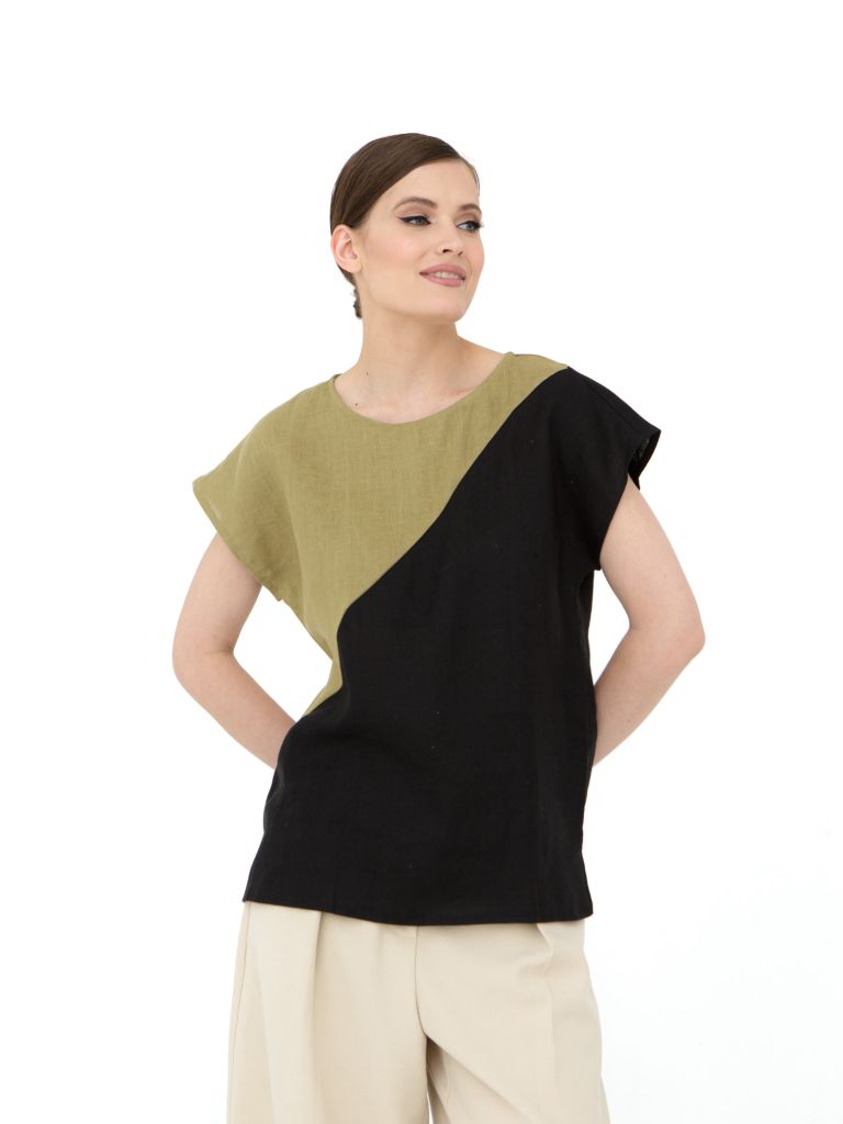 Женская блузка - это не просто предмет одежды, а стильный акцент, который подчеркнет вашу индивидуальность. Комбинированная блузка свободного кроя из 100% льна в цвете оливково-черный - это именно тот вариант, который не оставит равнодушной ни одну модницу. Лен - это натуральный материал, который известен своей прочностью и удобством. Блузка из льна обеспечивает прохладу и свежесть в жаркие дни и не сковывает движения благодаря свободному крою. Комбинированный цвет оливково-черный придает блузке элегантный и стильный вид. Ее можно носить в сочетании с джинсами и кедами для создания кэжуал образа, а также с классическими брюками и туфлями для создания офисного стиля.