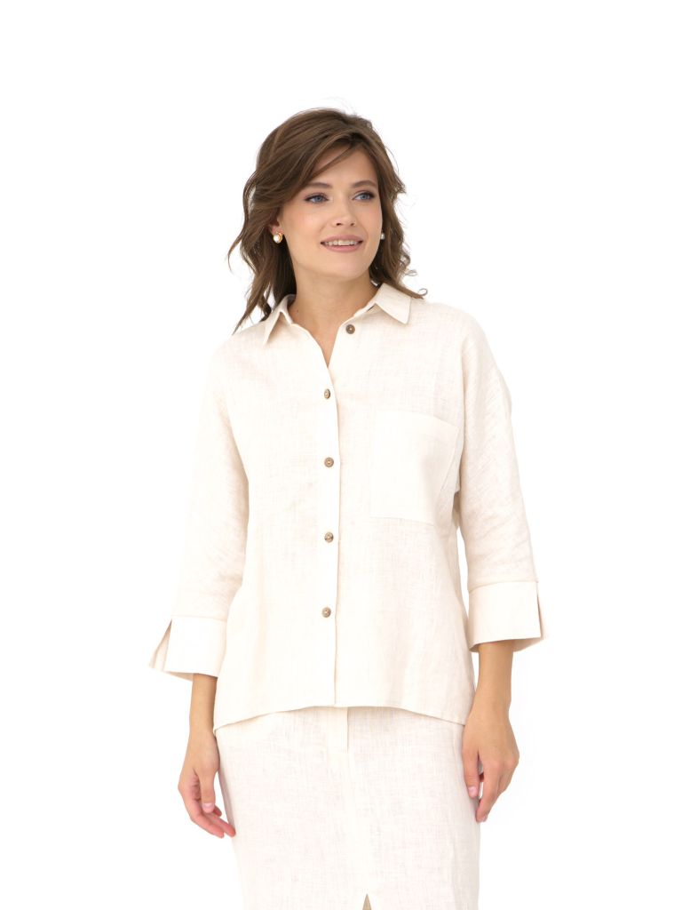 Элегантная льняная рубашка в бежевом цвете — идеальный выбор для летнего гардероба. Натуральный лен позволяет коже дышать, создавая ощущение прохлады в жаркую погоду. Свободный крой обеспечивает комфорт и свободу движений, а классический дизайн с пуговицами добавляет образу элегантность.Эта рубашка отлично сочетается как с брюками, так и с юбками, подчеркивая ваш стиль как в офисе, так и на прогулке. Длинные рукава с манжетами можно подогнуть для более неформального стиля. Бежевый оттенок добавляет универсальности, делая рубашку отличным дополнением к любому наряду.