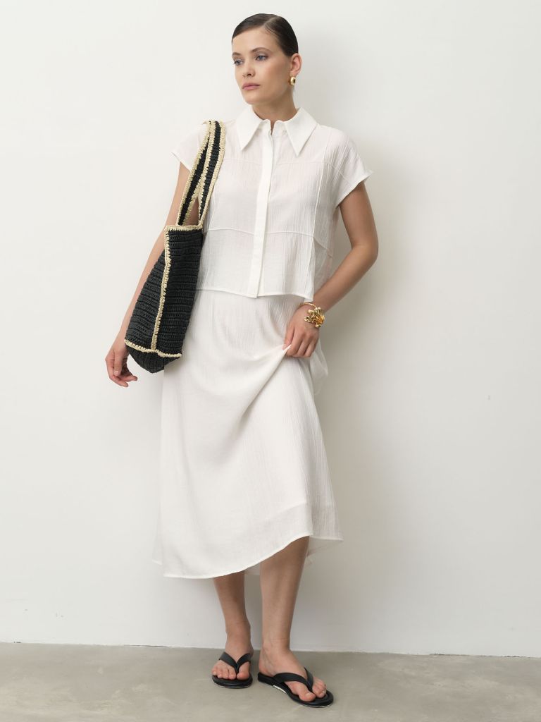 Элегантная белая блуза из вискозы — универсальный элемент базового гардероба. Лёгкая и дышащая ткань обеспечивает комфорт в течение всего дня, а лаконичный крой подчёркивает женственность и утончённый вкус. Идеально подходит как для офисного стиля, так и для повседневных образов.Преимущества вискозы:Отличная воздухопроницаемостьГипоаллергенностьХорошо впитывает влагуСочетается с классическими брюками, юбками-карандашами, джинсами и жакетами. Добавьте каблуки и украшения — и получите вечерний образ, или наденьте с кроссовками для более расслабенного стиля.Размерная сетка